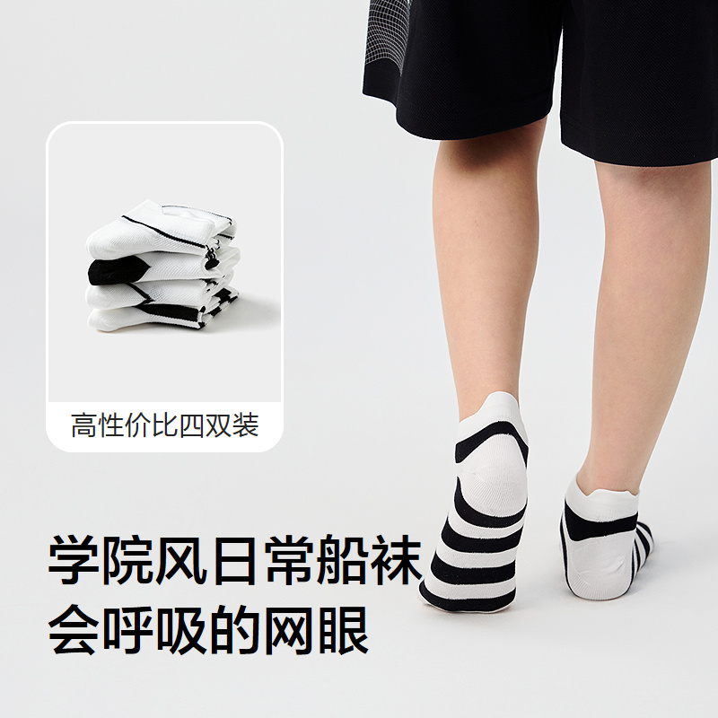 巴拉巴拉儿童船袜夏季网眼袜薄款透气男女童短袜学院风弹力四双装