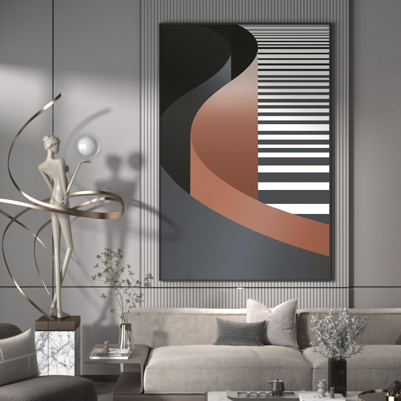 现代轻奢客厅餐厅卧室玄关装饰画背景墙壁落地立体空间线条挂画