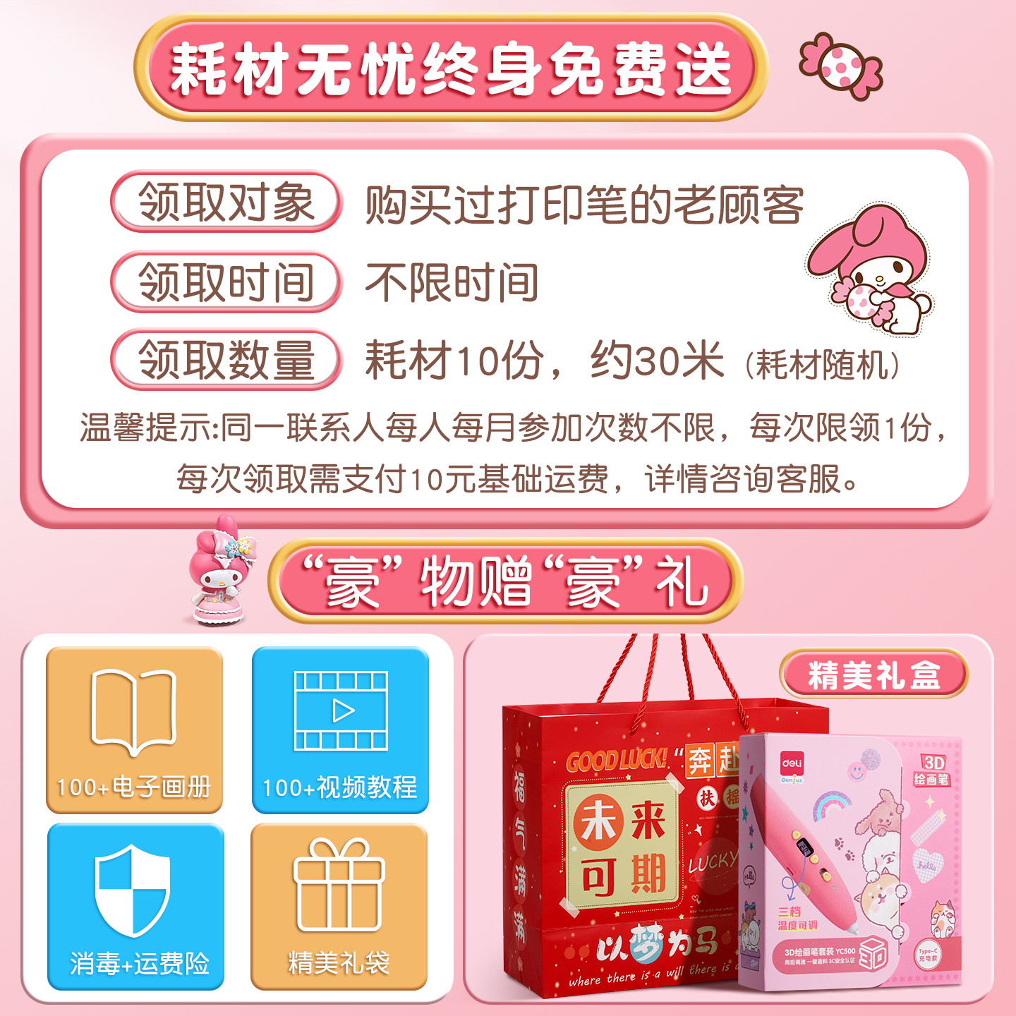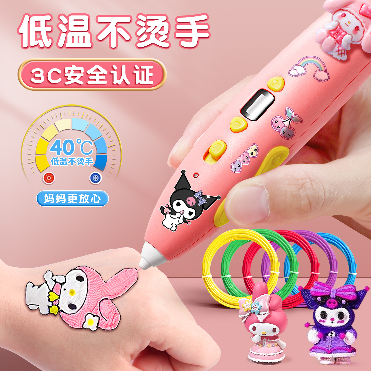 得力3d打印笔立体涂鸦绘画打印机笔低温不烫手儿童款3d耗材套装小学生益智玩具三D打印笔送礼生日礼物男女孩