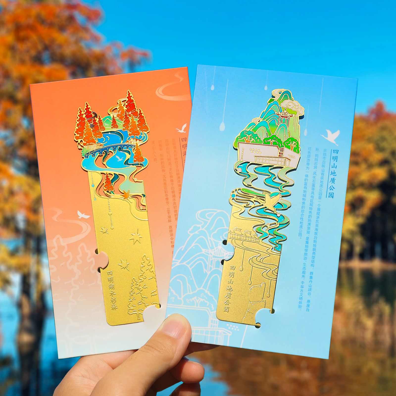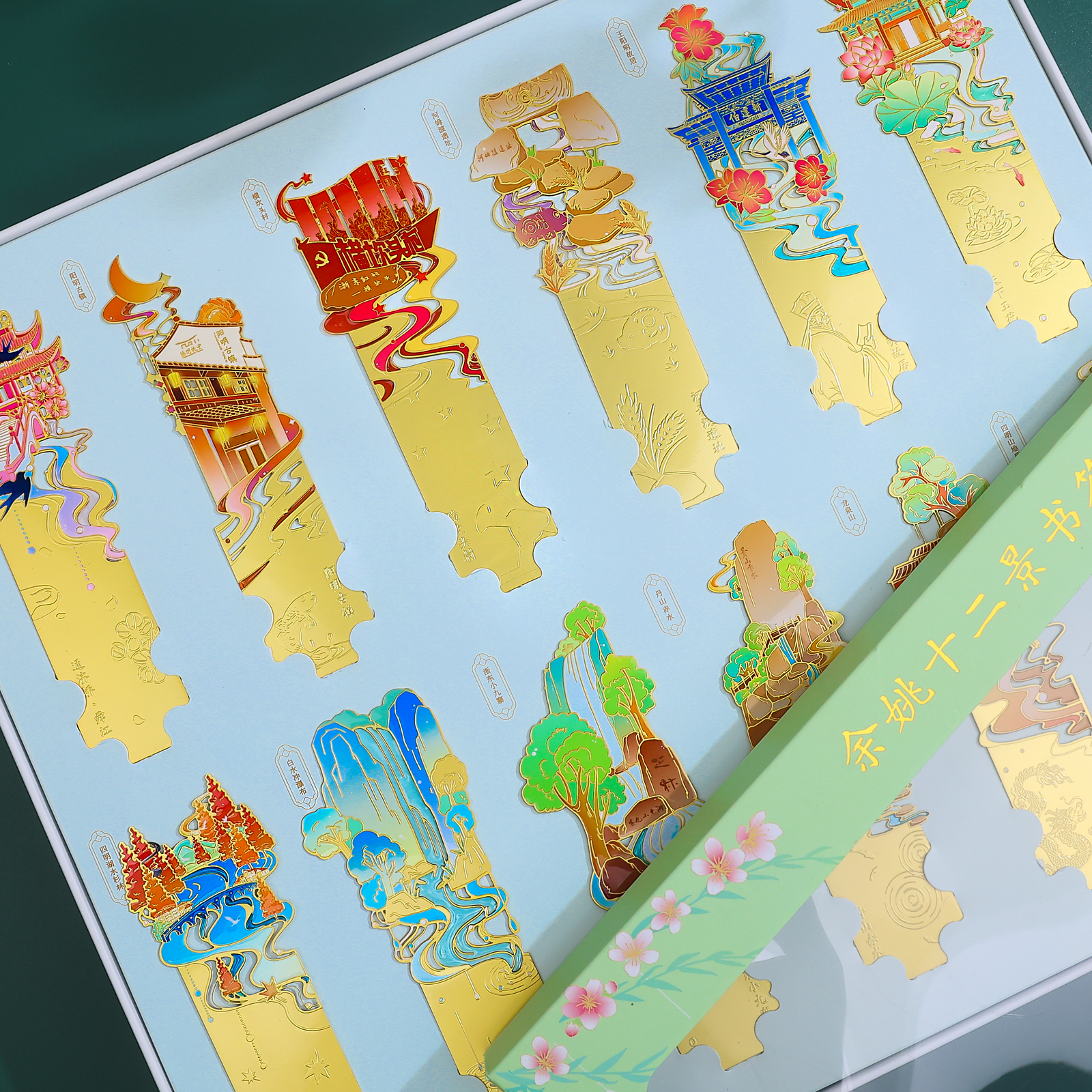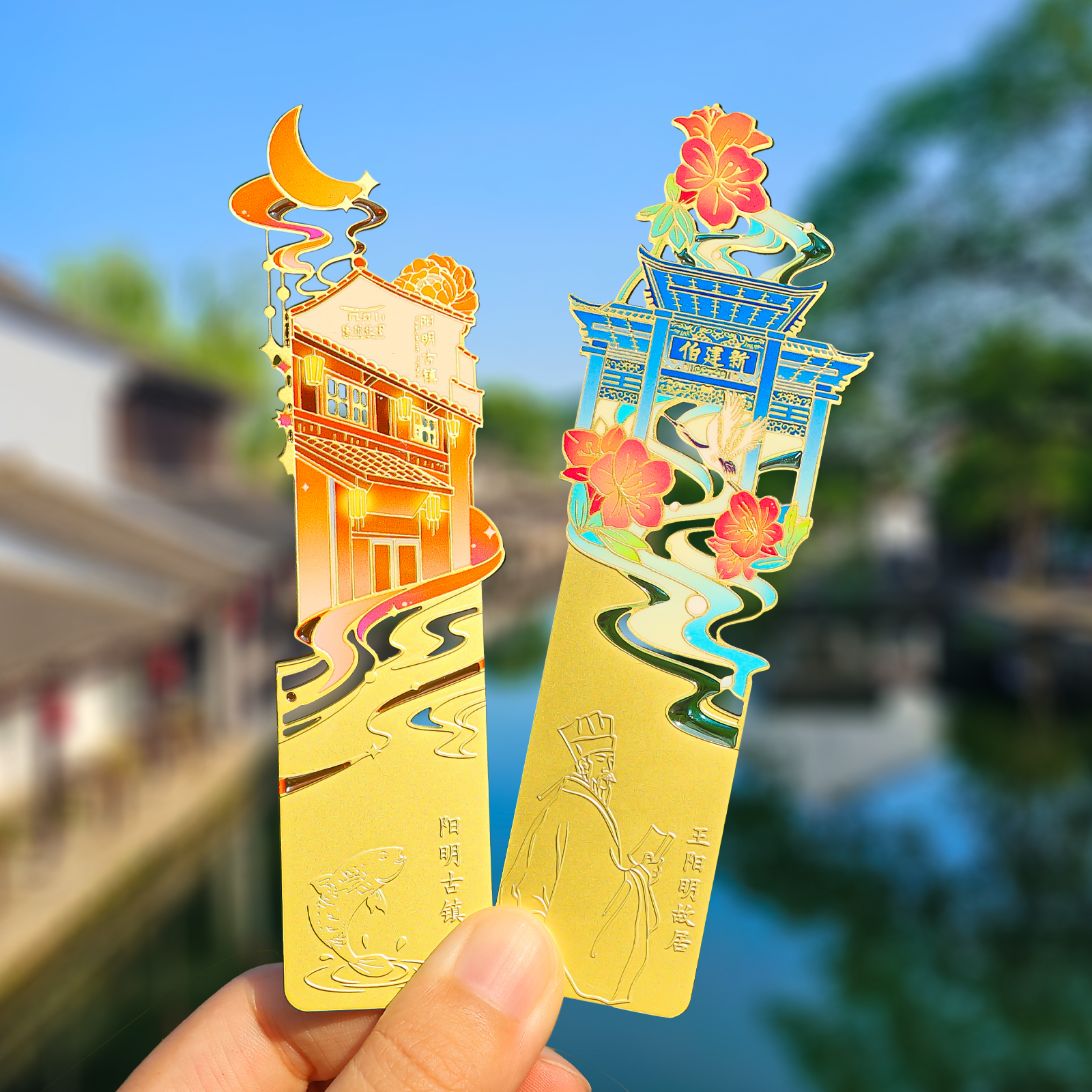 余姚十二景书签精致镂空金属阅读工具宁波旅游景区文创纪念品定制刻字河姆渡遗址四明山地质公园送老外小礼品