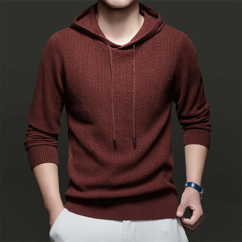 日本品质秋冬欧洲站新款轻奢100纯羊毛连帽针织衫男卫衣毛衣时尚