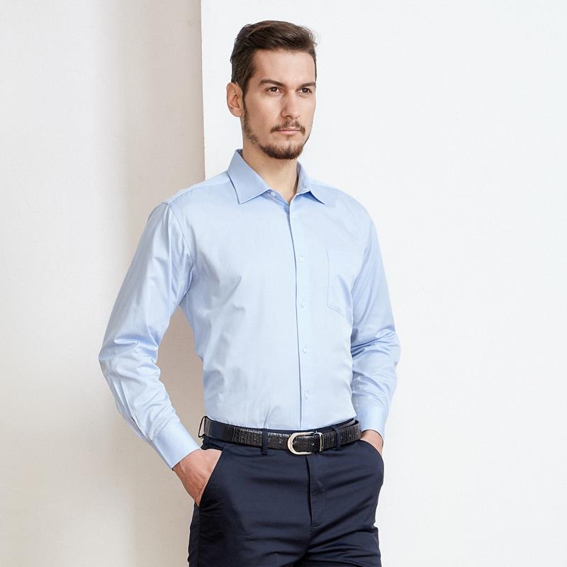 高档闲开商务抗皱衬衣男宽松袖大码工作服中年休长开正装白衬衫易