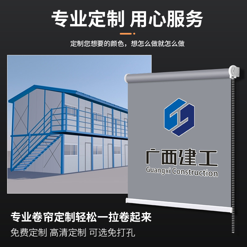 定制logo卷帘窗帘办公室工程银行广告图案遮光遮阳电动升降卷拉式