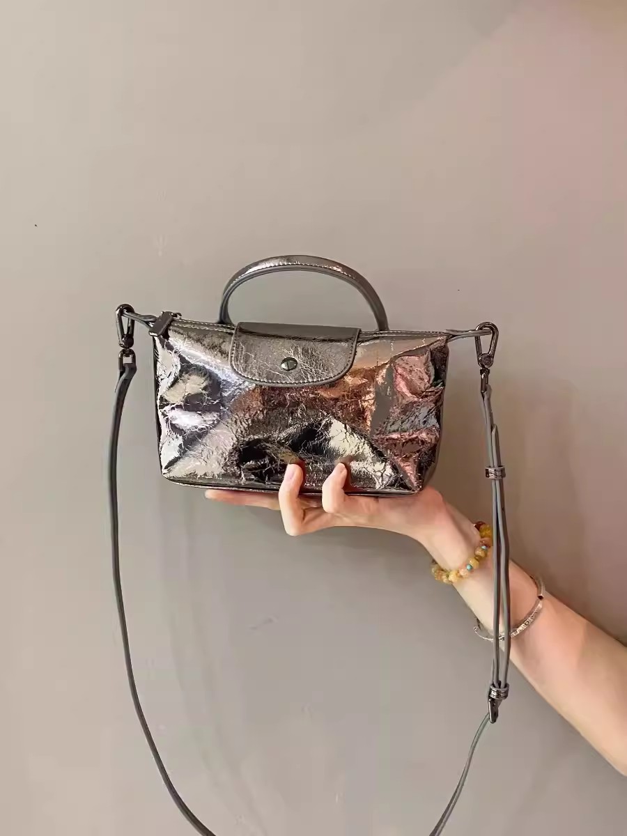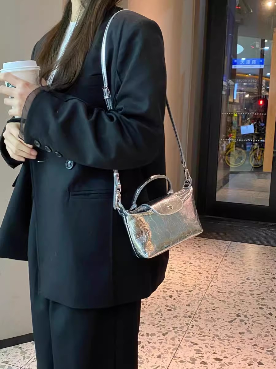 饺子包2025新款女包时尚手机包百搭新夏天银色质感单肩斜挎小包