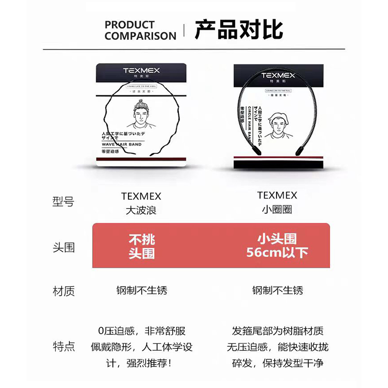 TEXMEX发箍男网红大波浪不勒头隐形运动发卡女洗脸刘海压发发带