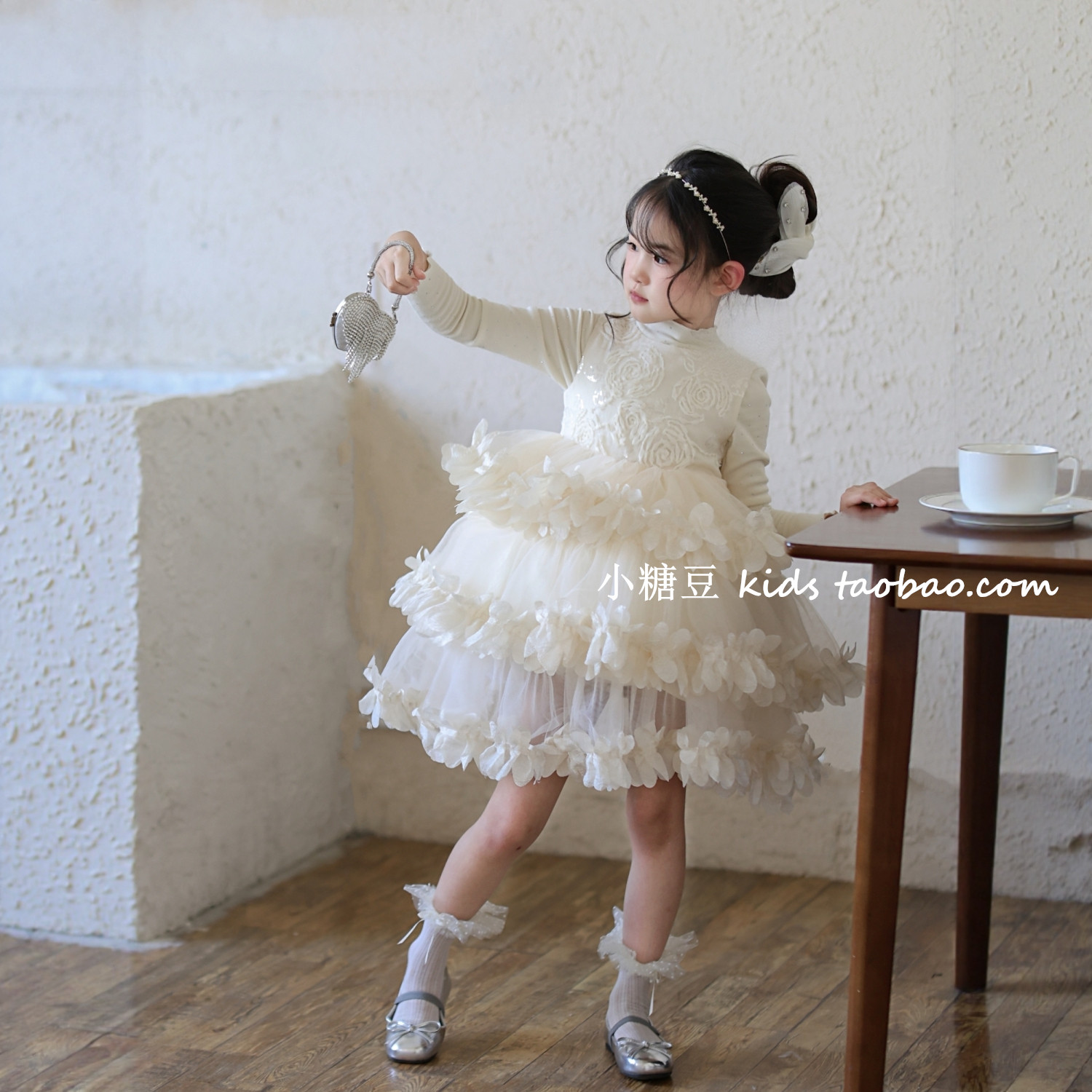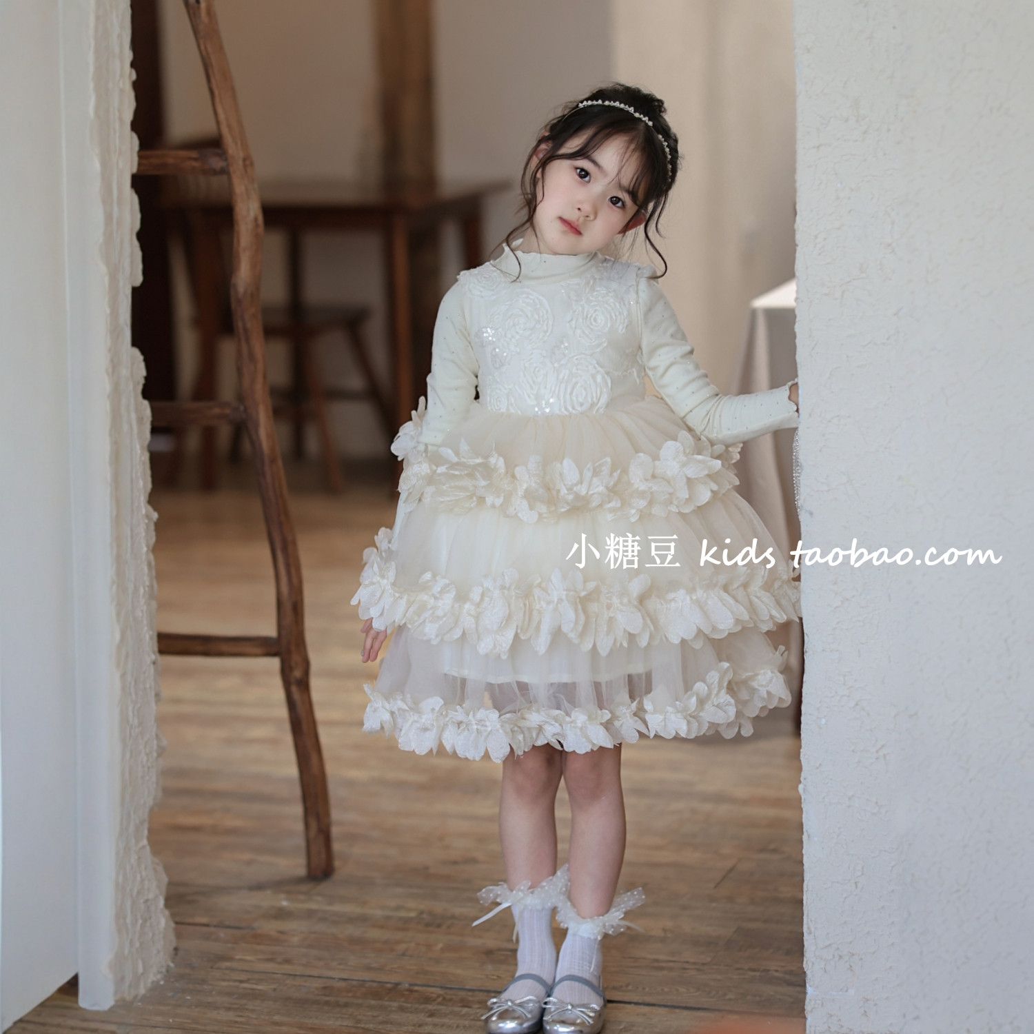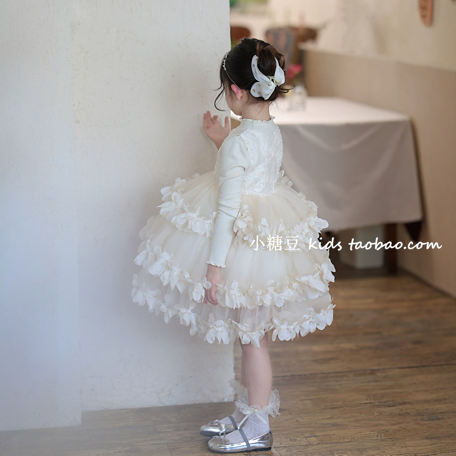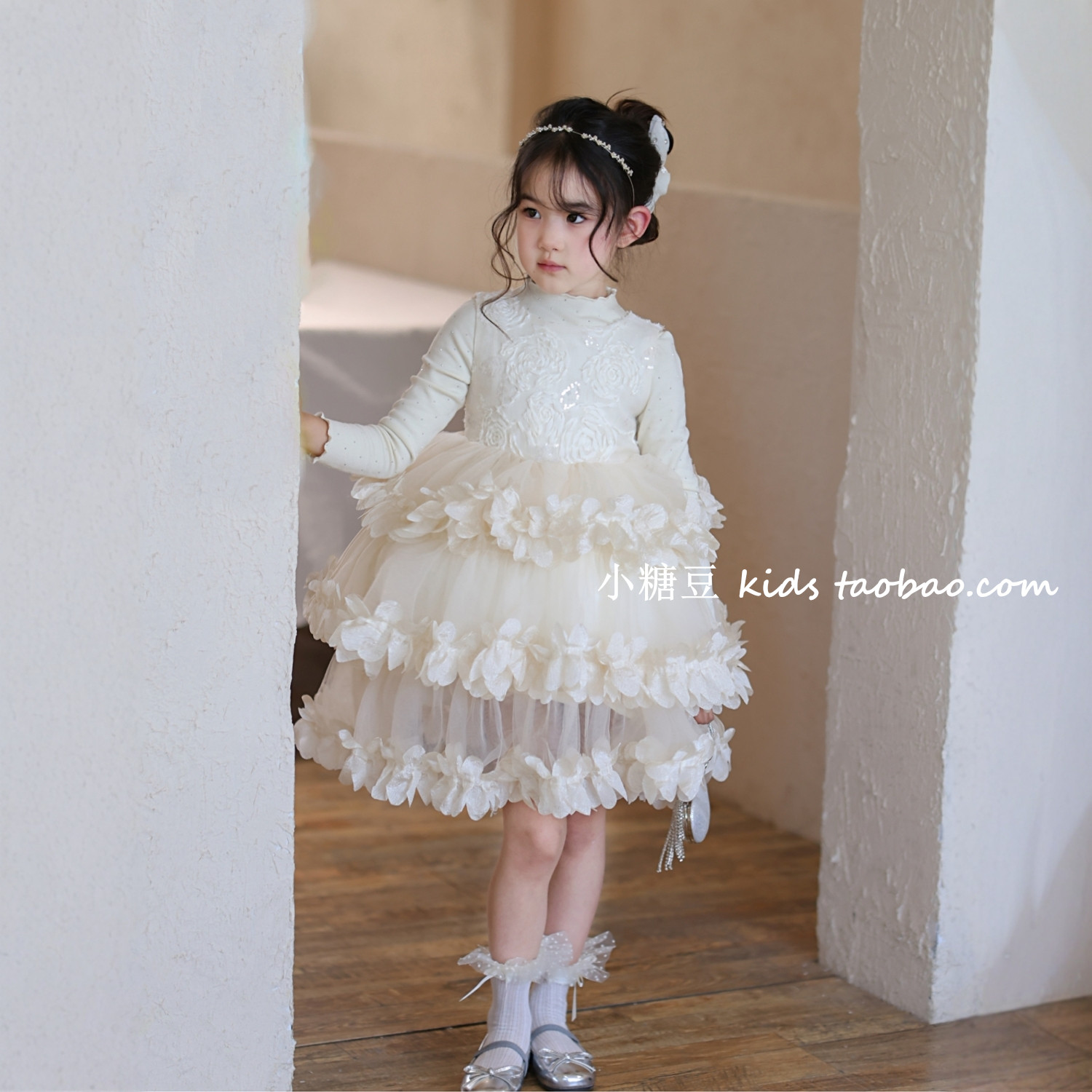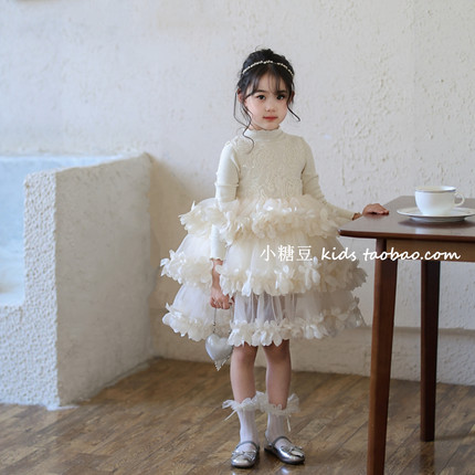 女童花瓣网纱蛋糕连衣裙2025冬季新款女孩高级感蓬蓬公主裙礼服裙