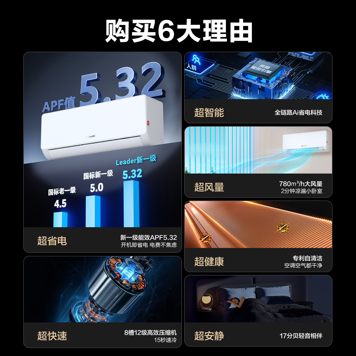 海尔出品统帅空调家用1.5匹一级能效冷暖卧室大1匹2匹挂机超省电