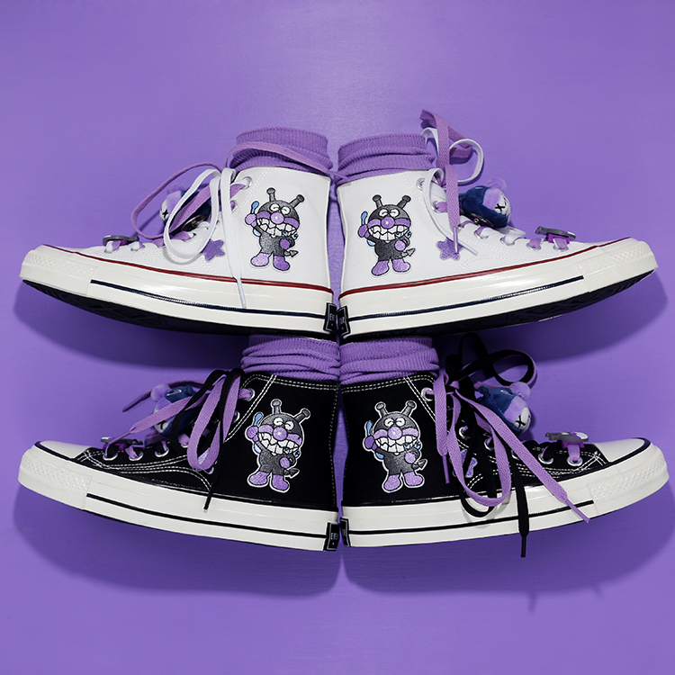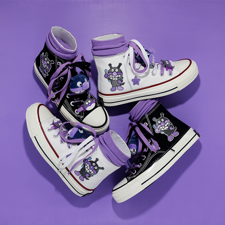 春夏高帮帆布鞋女春季韩版手绘初中生鞋女ins原创设计感小众紫色