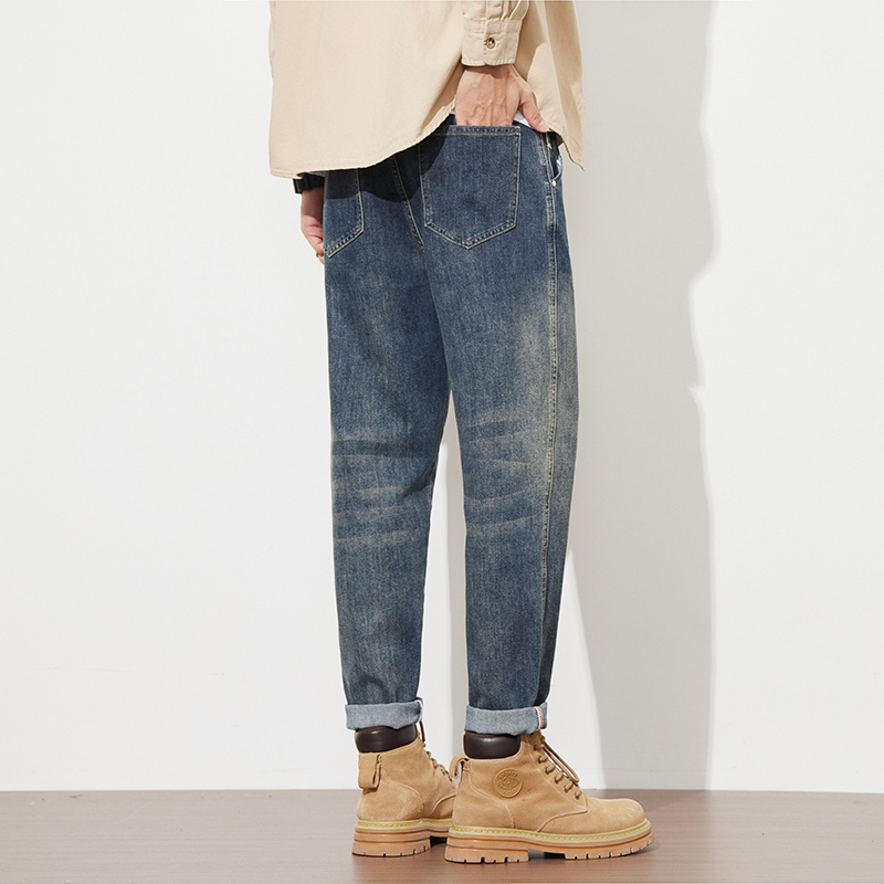 唐狮2025春秋季新款男牛仔长裤宽松简约帅气潮流直筒水洗裤子男士