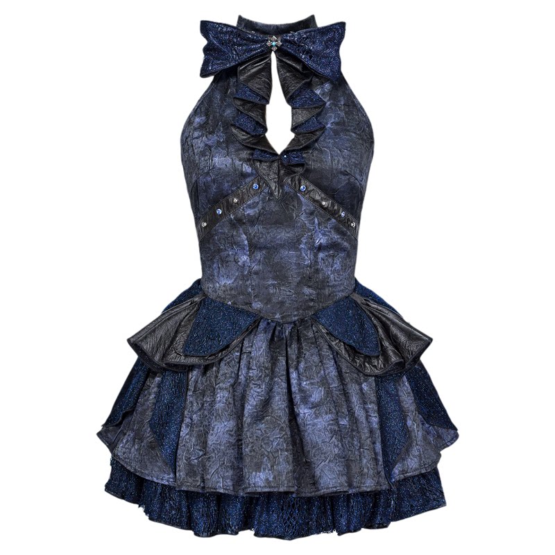 虚轨原创 告别序曲y3k辣妹少女朋克风蕾丝蝴蝶结爆闪挂脖连衣裙女