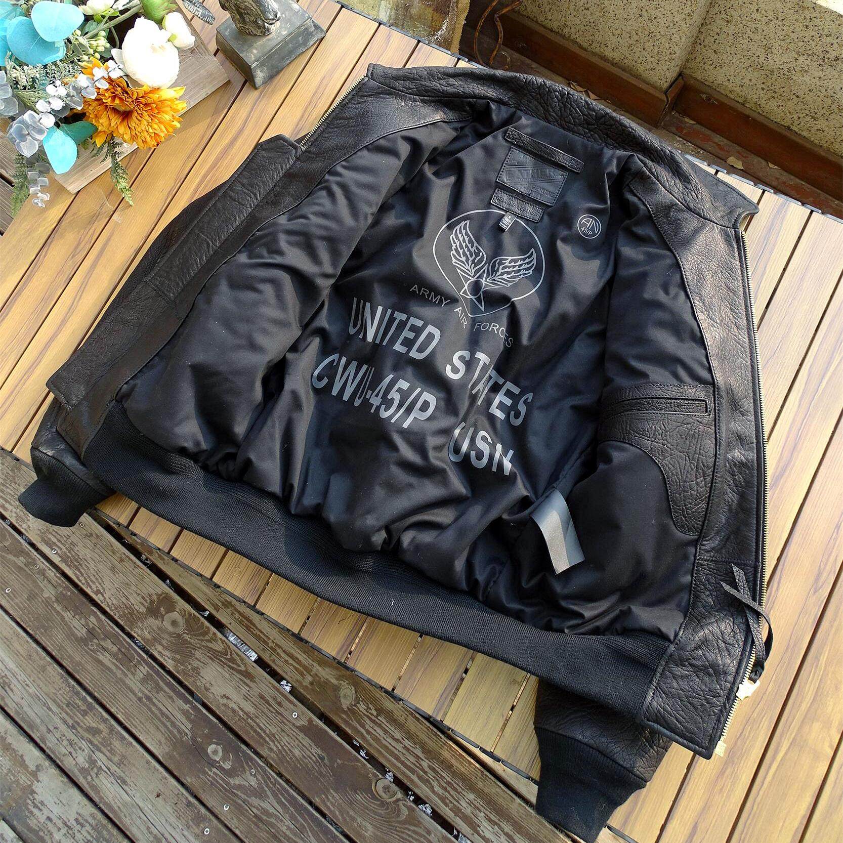 粗野纹理野牛纹欧版CWU-45P空军飞行皮夹克真皮皮衣