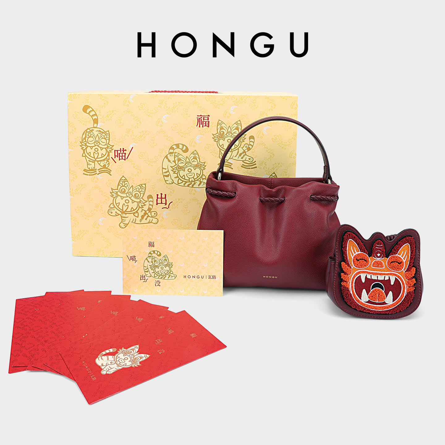【新年礼物】红谷五福临门红色包包礼盒套装送礼新款牛皮女士包