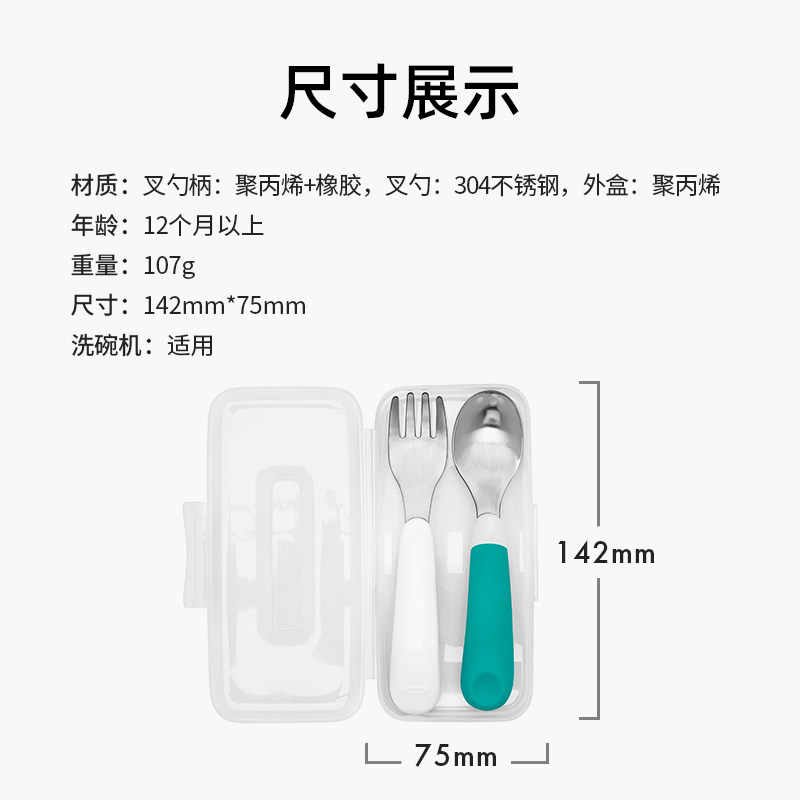 OXO奥秀不锈钢叉勺套装宝宝辅食餐具勺子叉子便携儿童吃饭婴幼儿