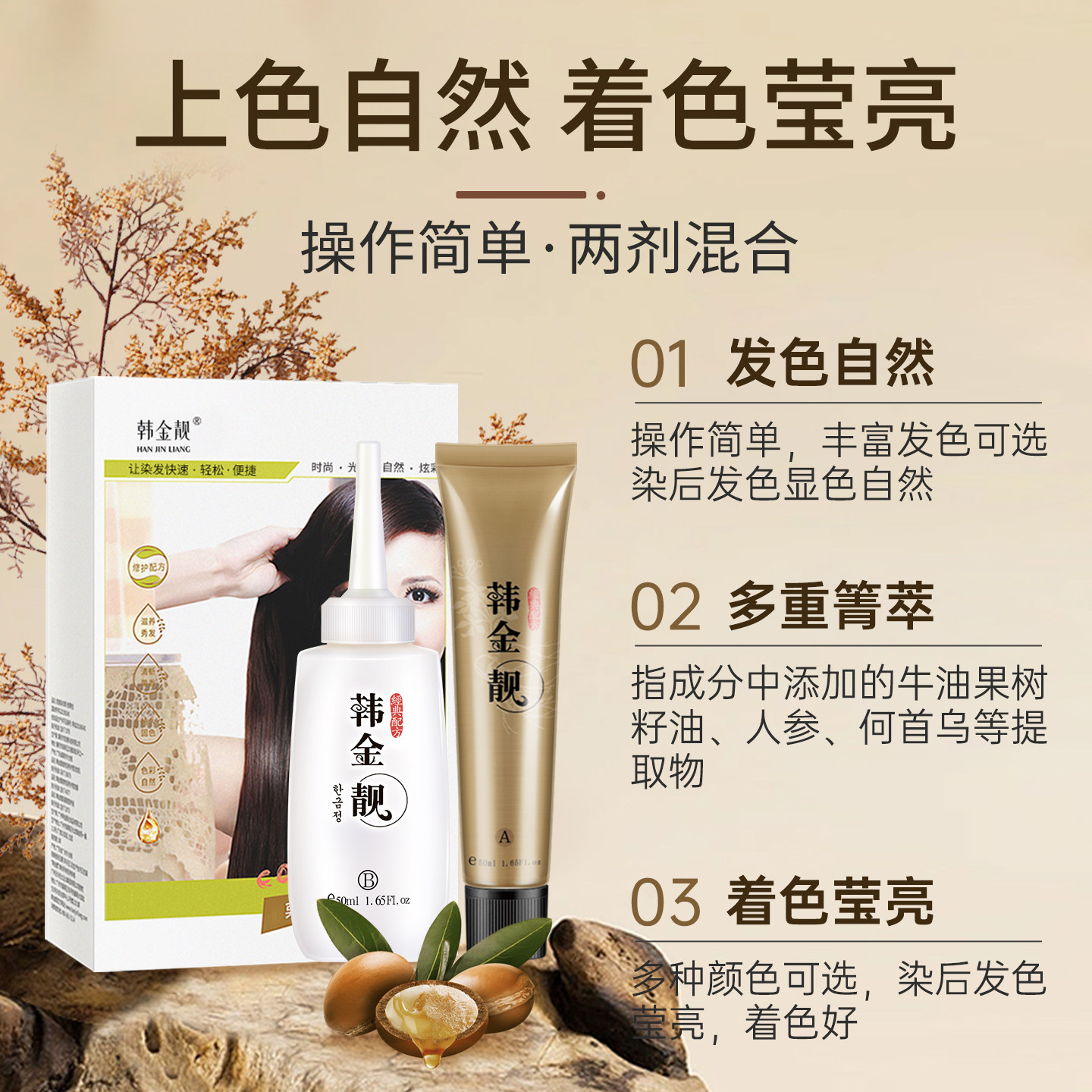 韩金靓染发膏天然流行色植物栗黑