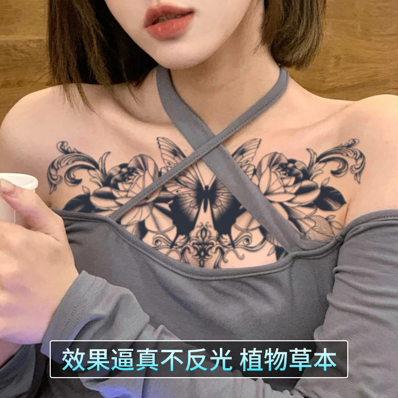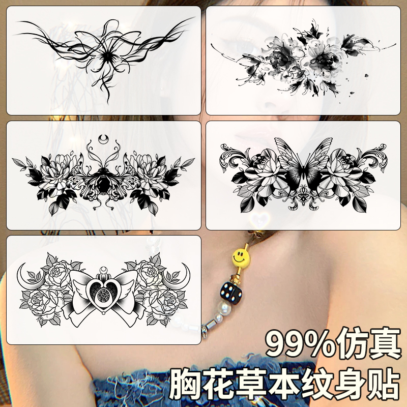 胸花纹身贴防水女性感锁骨胸口持久刺青草本不反光仿真图案果汁贴