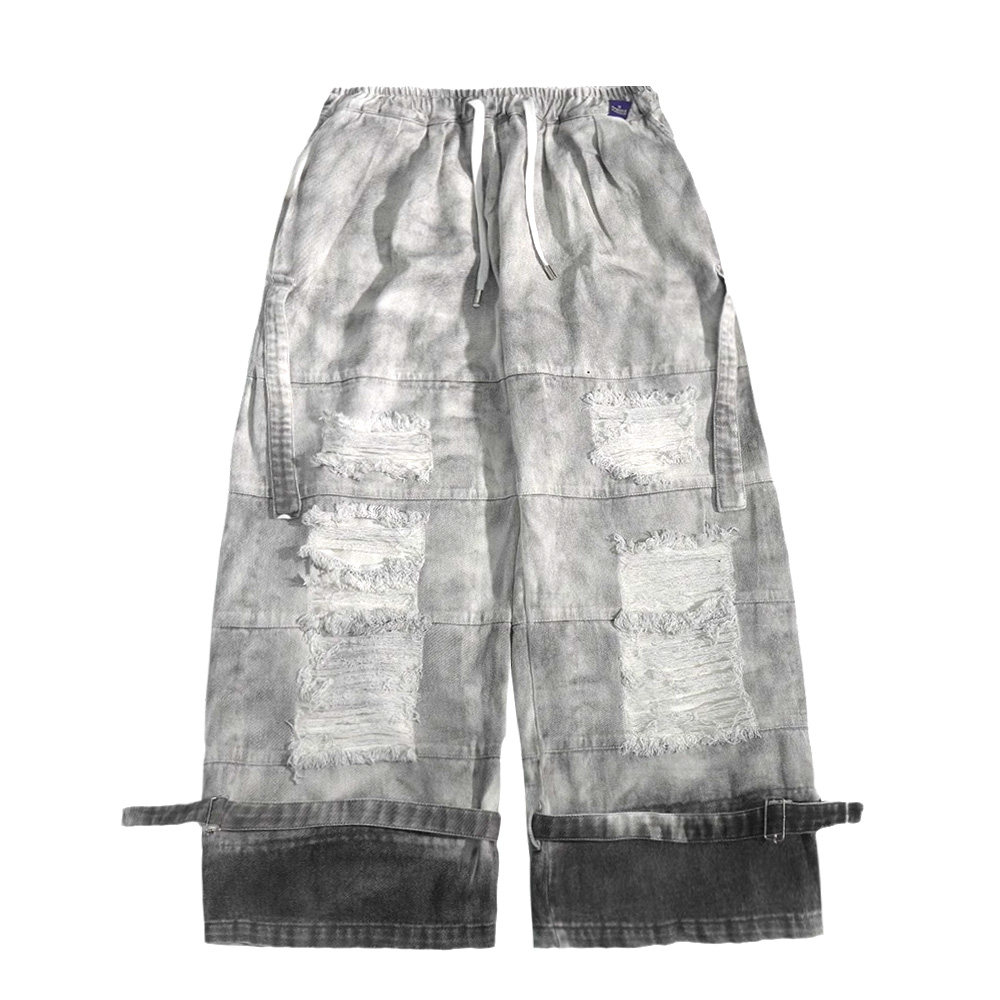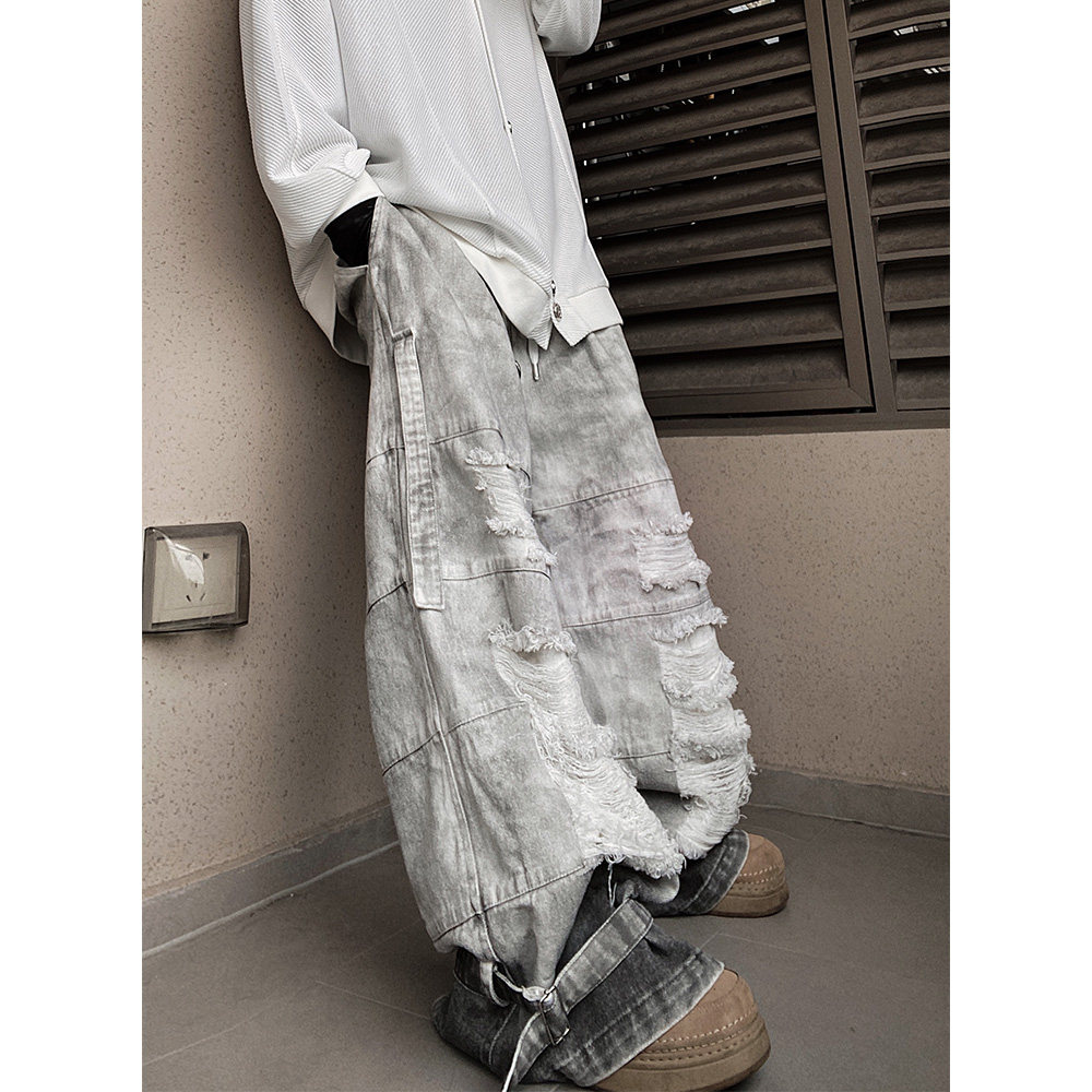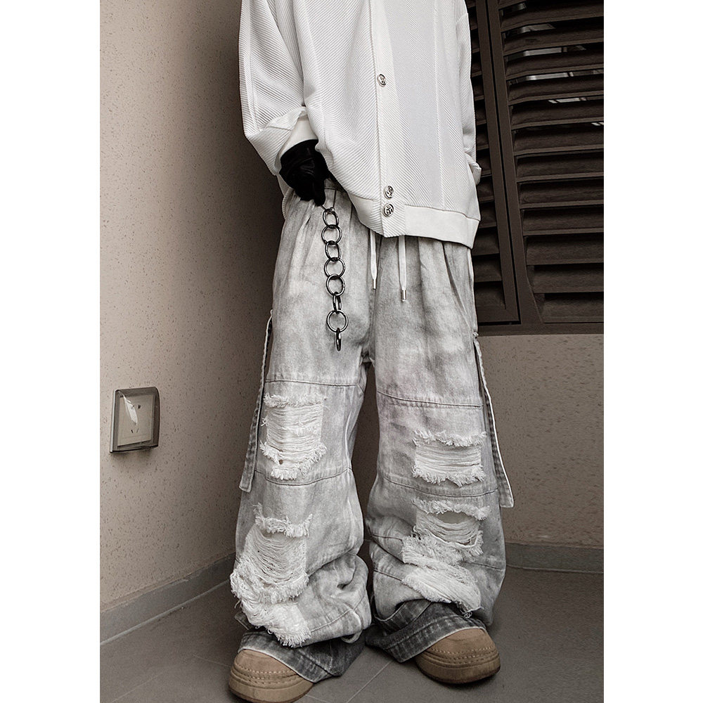 高街宽松泥染工装阔腿长裤