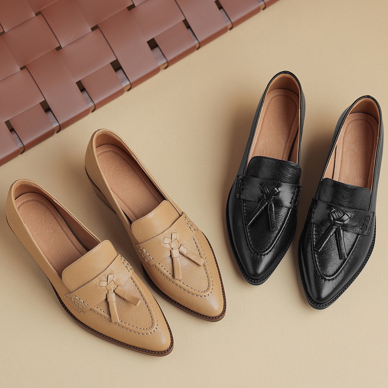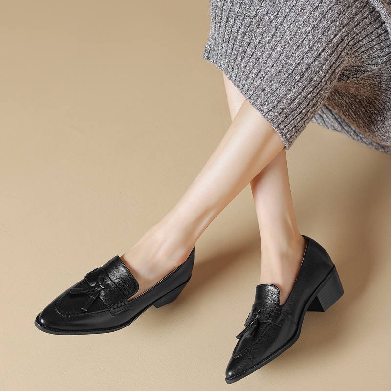 真皮超软粗跟乐福鞋法式