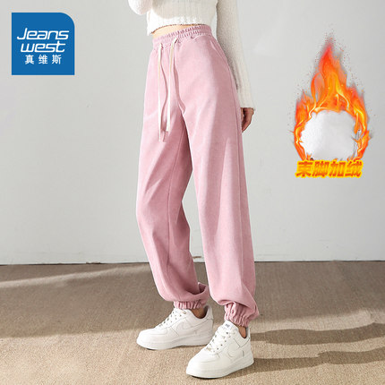 YD真维斯女装秋冬季 潮流时尚简约纯色松紧腰加绒保暖设计感长裤