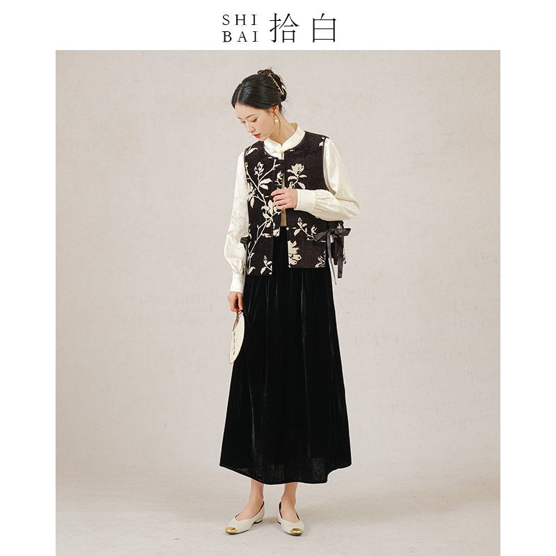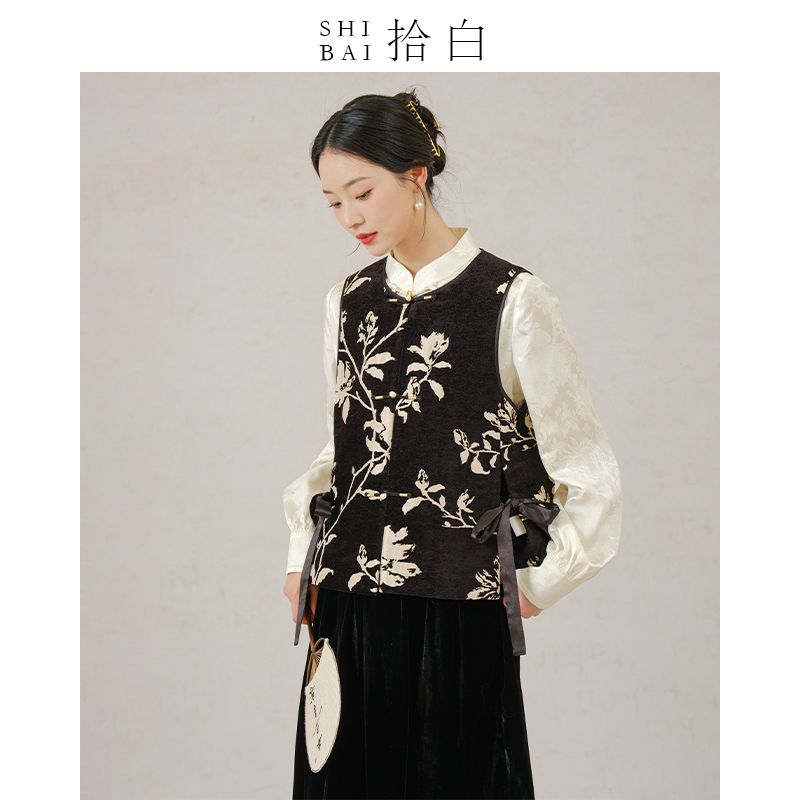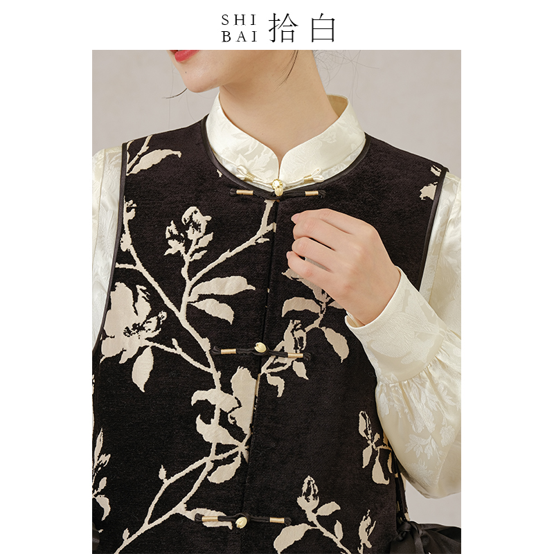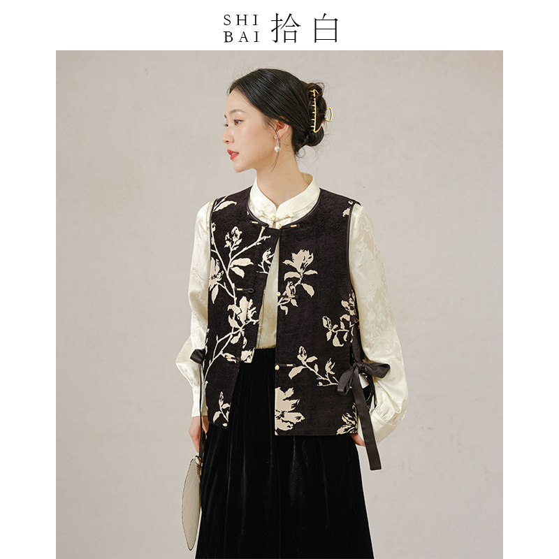 SHIBAI拾白新中式马甲春秋原创设计国风女装黑色优雅气质盘扣上衣