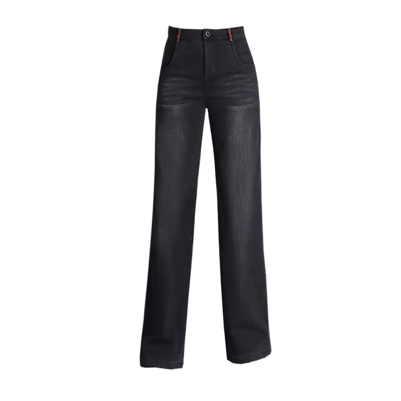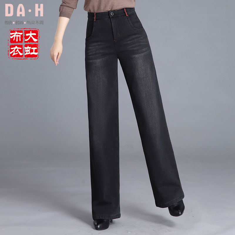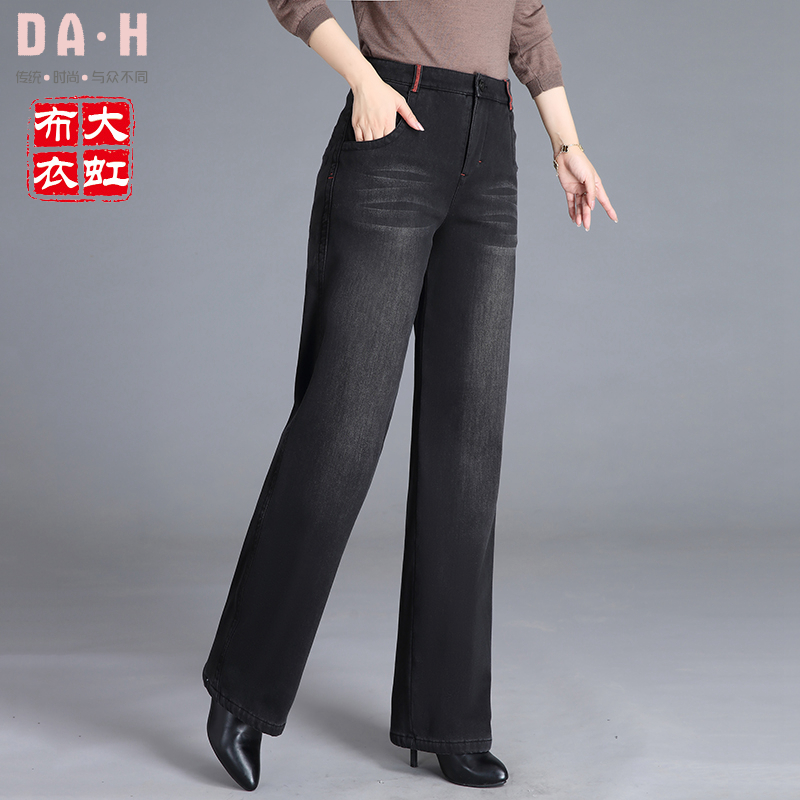 高腰直筒宽松牛仔裤2025秋冬新款窄版阔腿女裤微弹加绒加厚妈妈裤