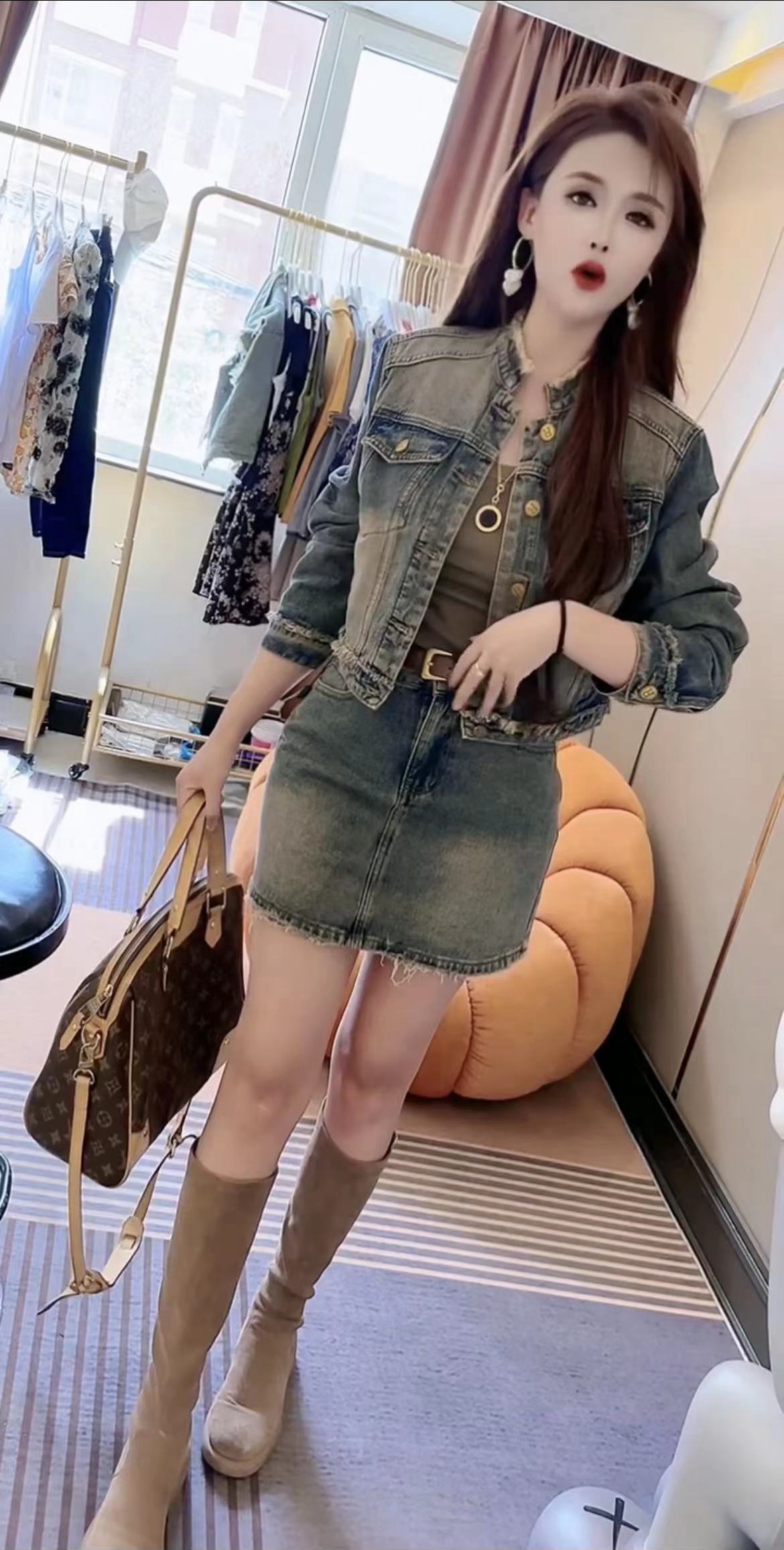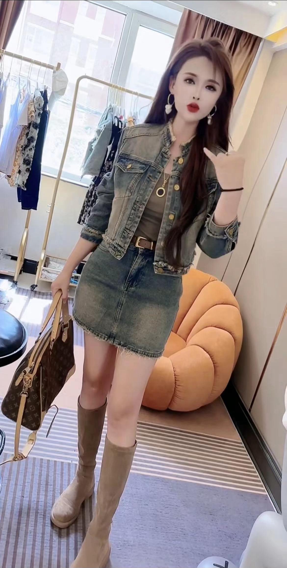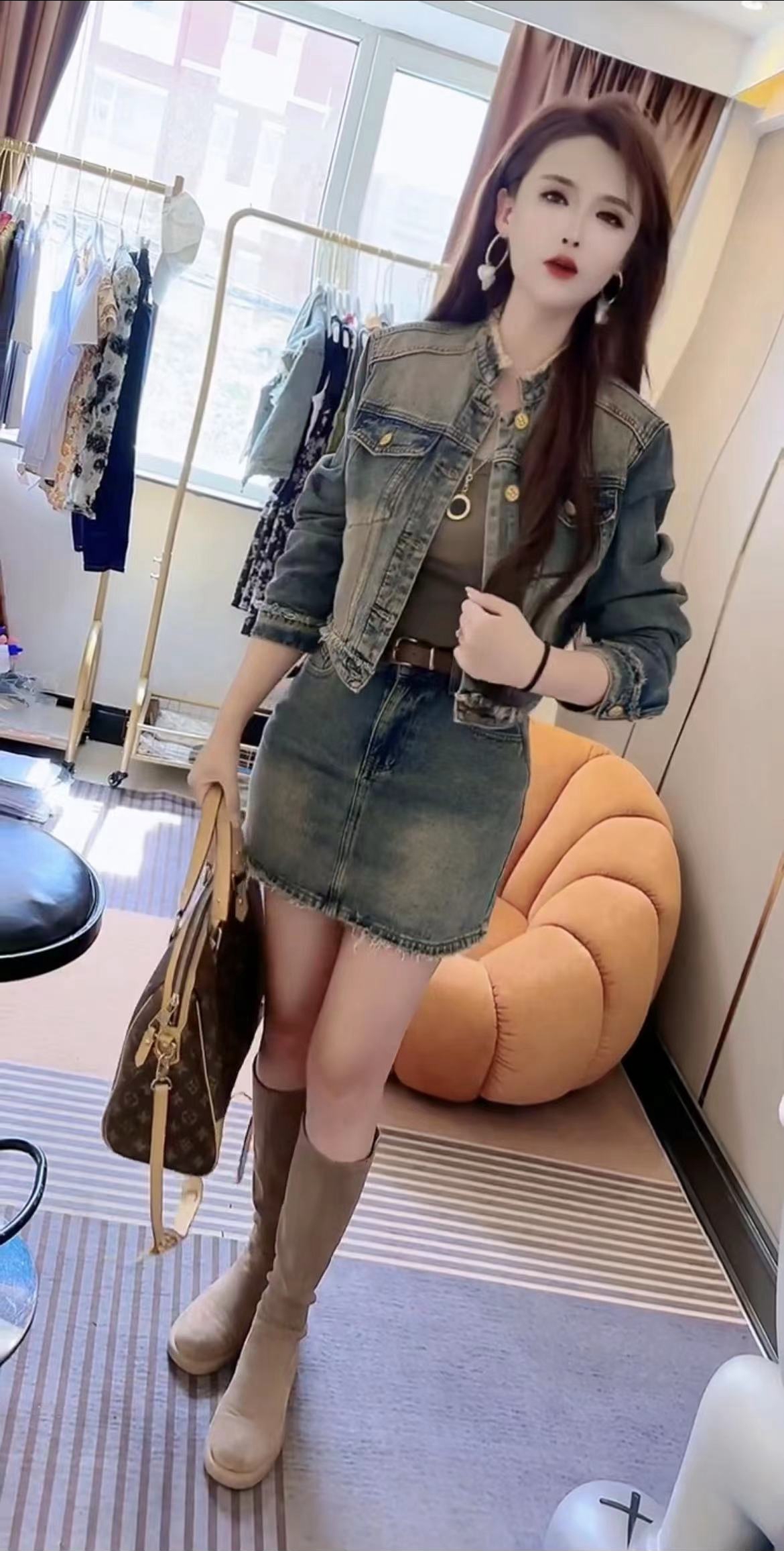 港风休闲时尚牛仔外套短裙两件套