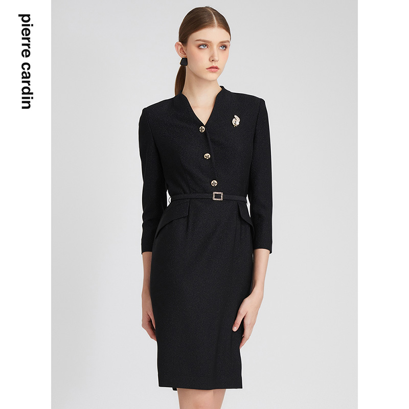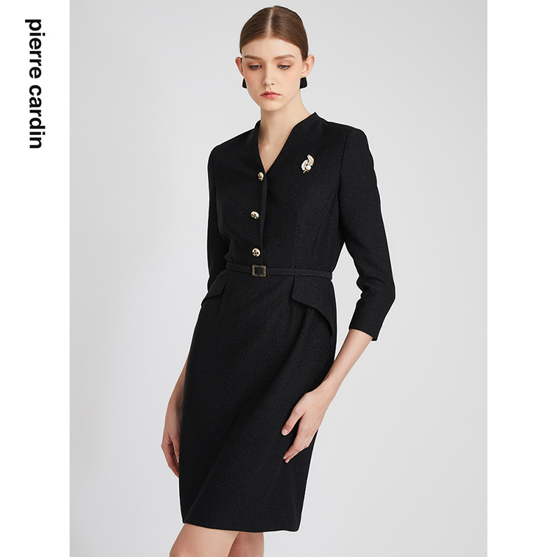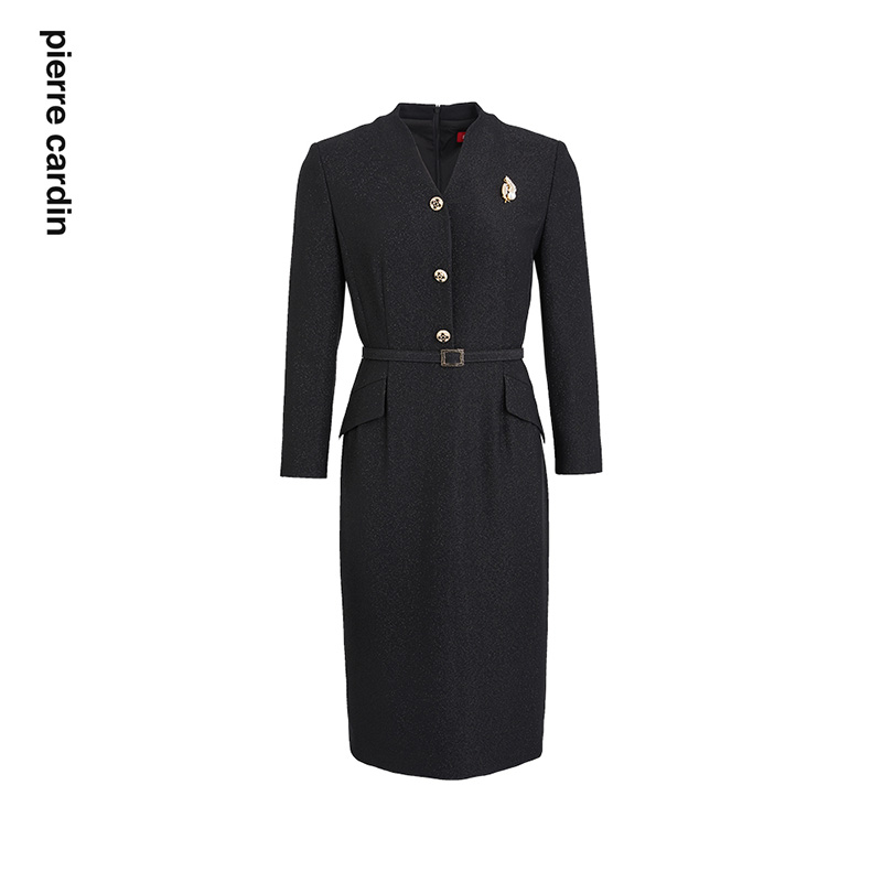 【皮尔卡丹女装】通勤职业干练修身长袖连衣裙【专柜正品】