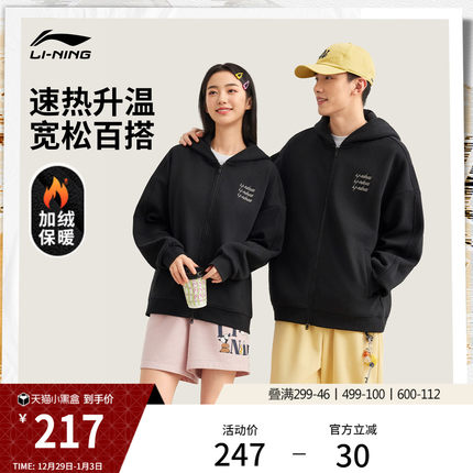 李宁美式情侣加绒连帽外套