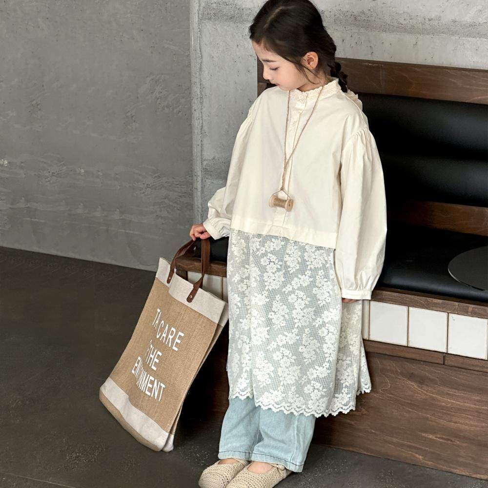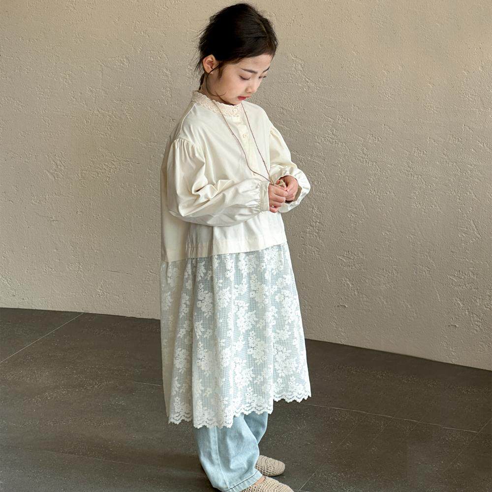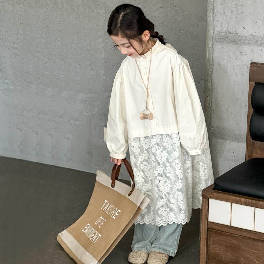 女童长袖连衣裙蕾丝拼接衬衫裙