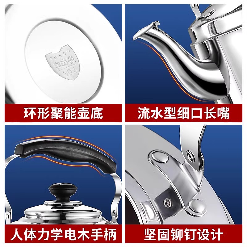华际达烧水壶304不锈钢鸣笛开水壶家用大容量明火煤气电磁炉通用