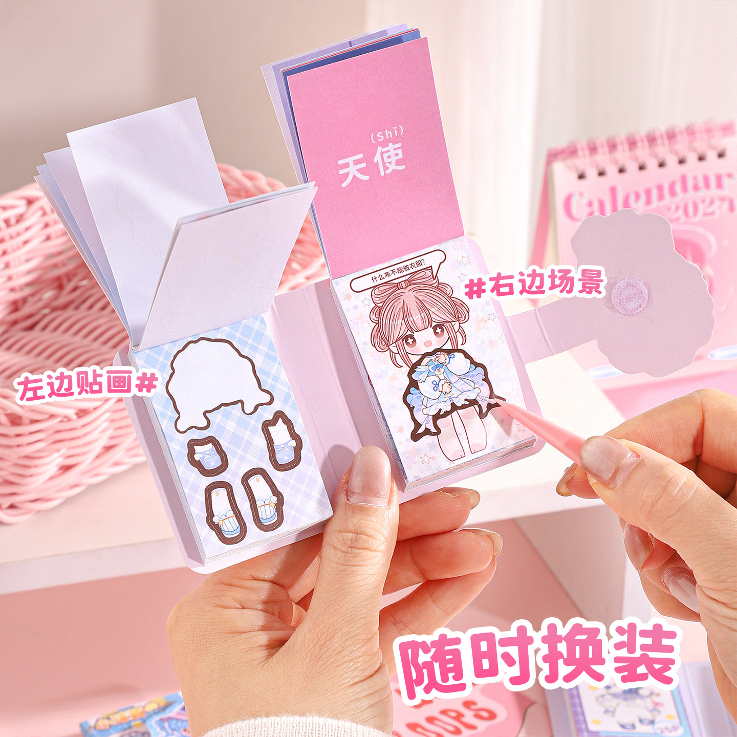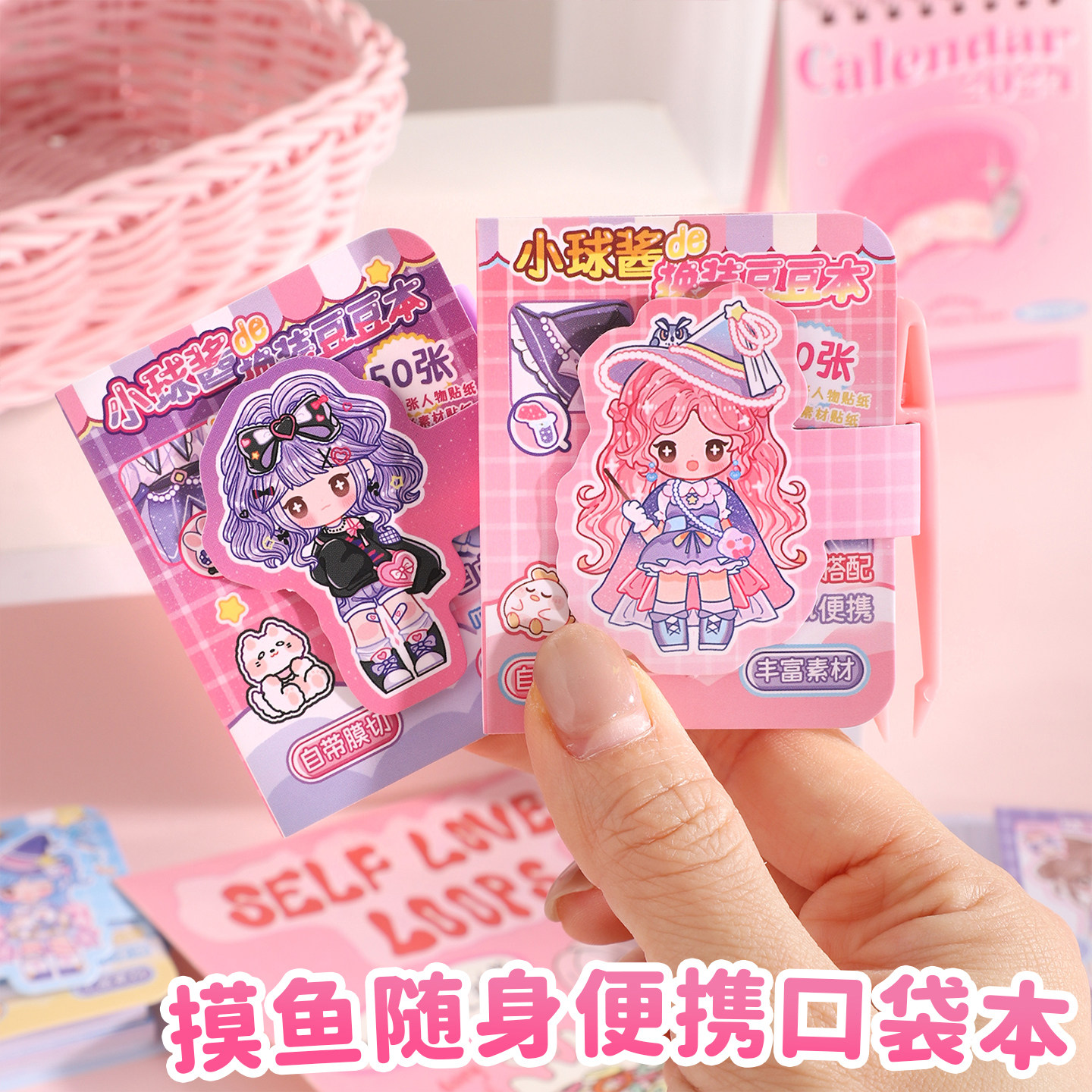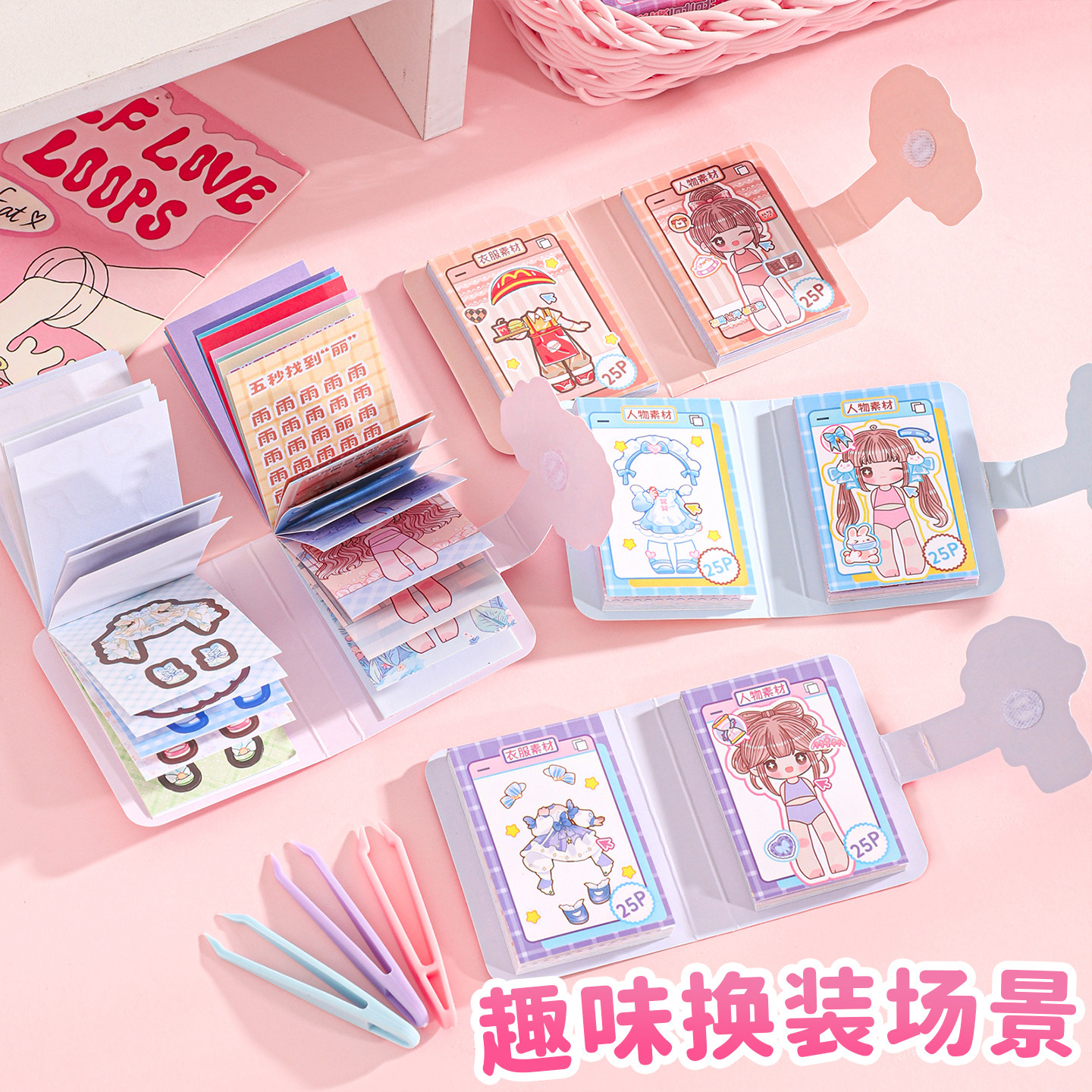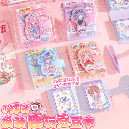 小球酱换装趣玩豆豆贴纸本女孩儿童手帐装饰小图案贴画高颜值趣味解压游戏本小学生免裁剪摸鱼随身便携口袋本