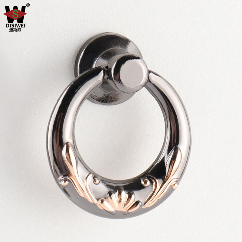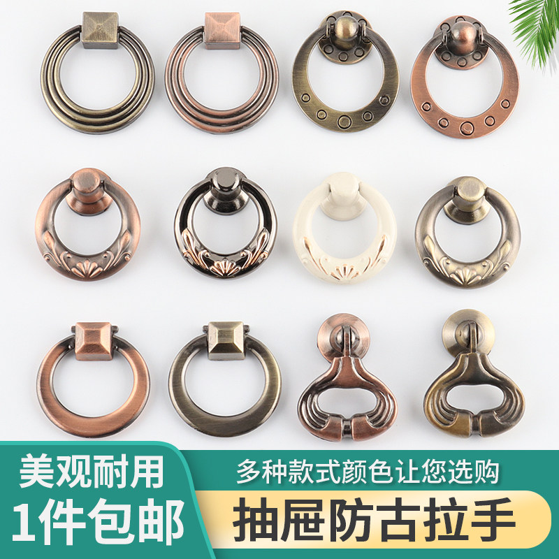 抽屉拉手单孔中式衣橱柜床头柜门把手圆形仿古青古铜简约红古拉环