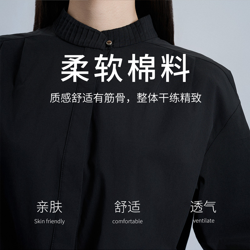 IVYKKI艾维女装秋季新款时尚优雅立领衬衫女宽松休闲百搭上衣通勤