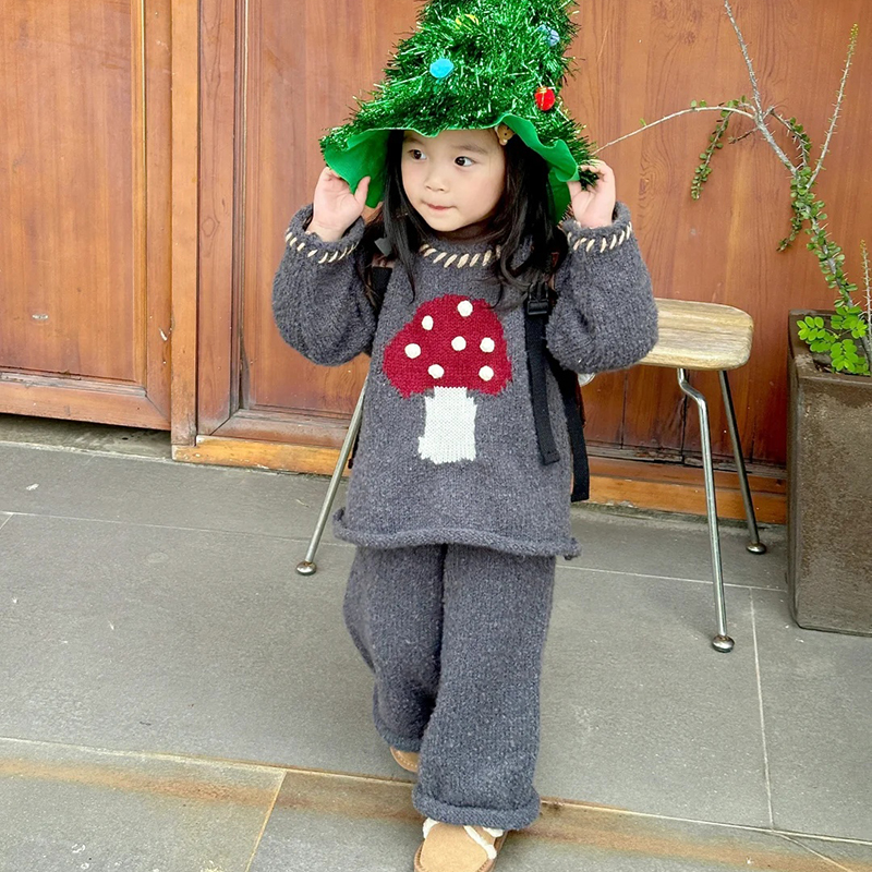 女童毛衣春秋款网红热款女宝宝时髦可爱印花针织卫衣长裤儿童上衣