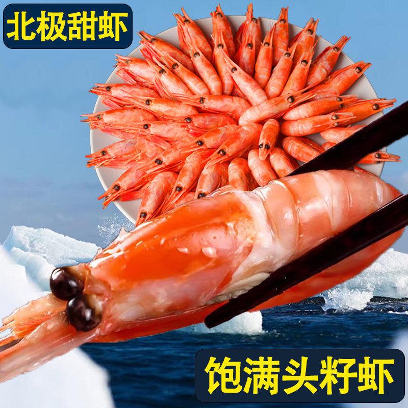 北极甜虾冰虾头籽腹籽新鲜超大虾刺身带籽北极熊海鲜水产鲜活虾