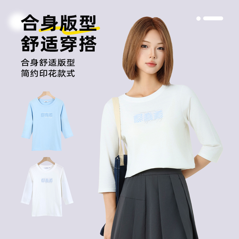 【商场同款】真维斯女装2025秋季新款时尚简约圆领合身中袖T恤