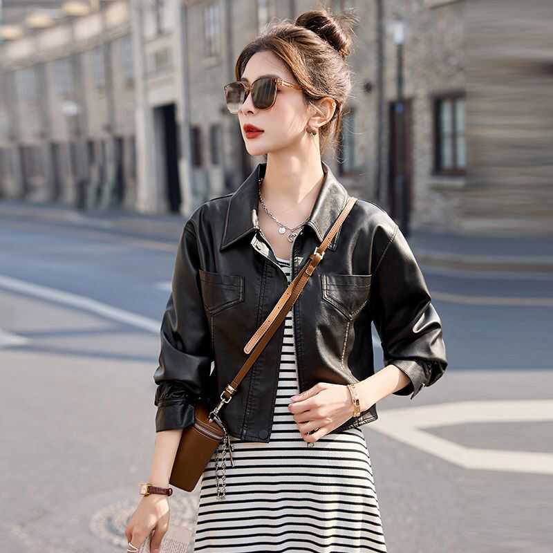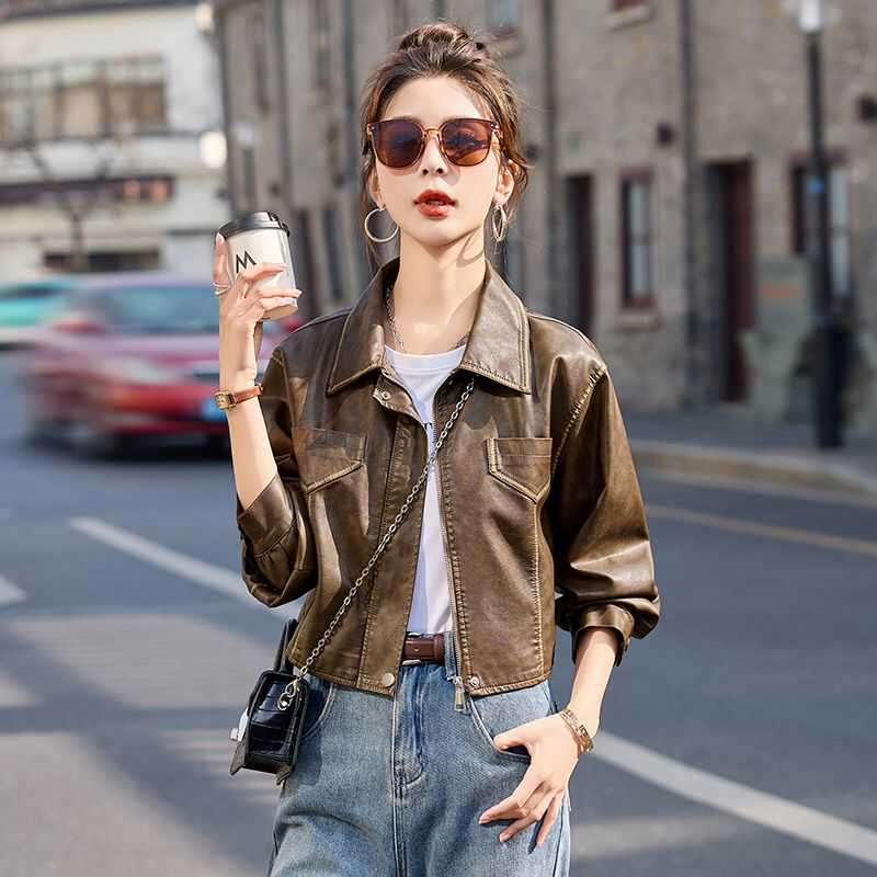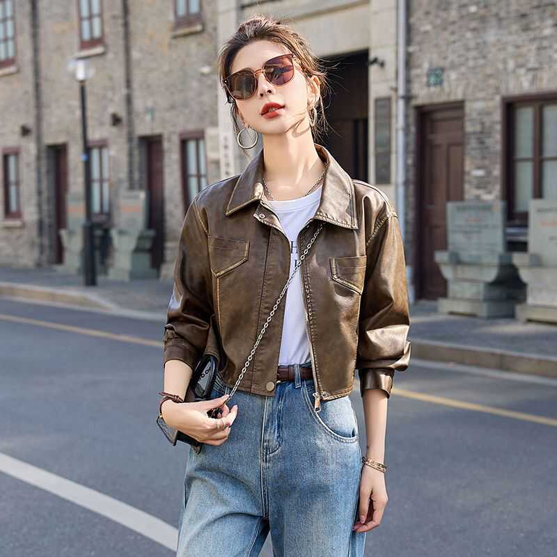 港风皮衣女外套春秋新款洋气设计感复古机车皮夹克小个子短款上衣