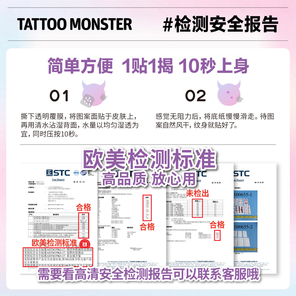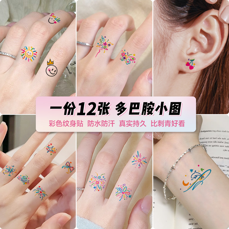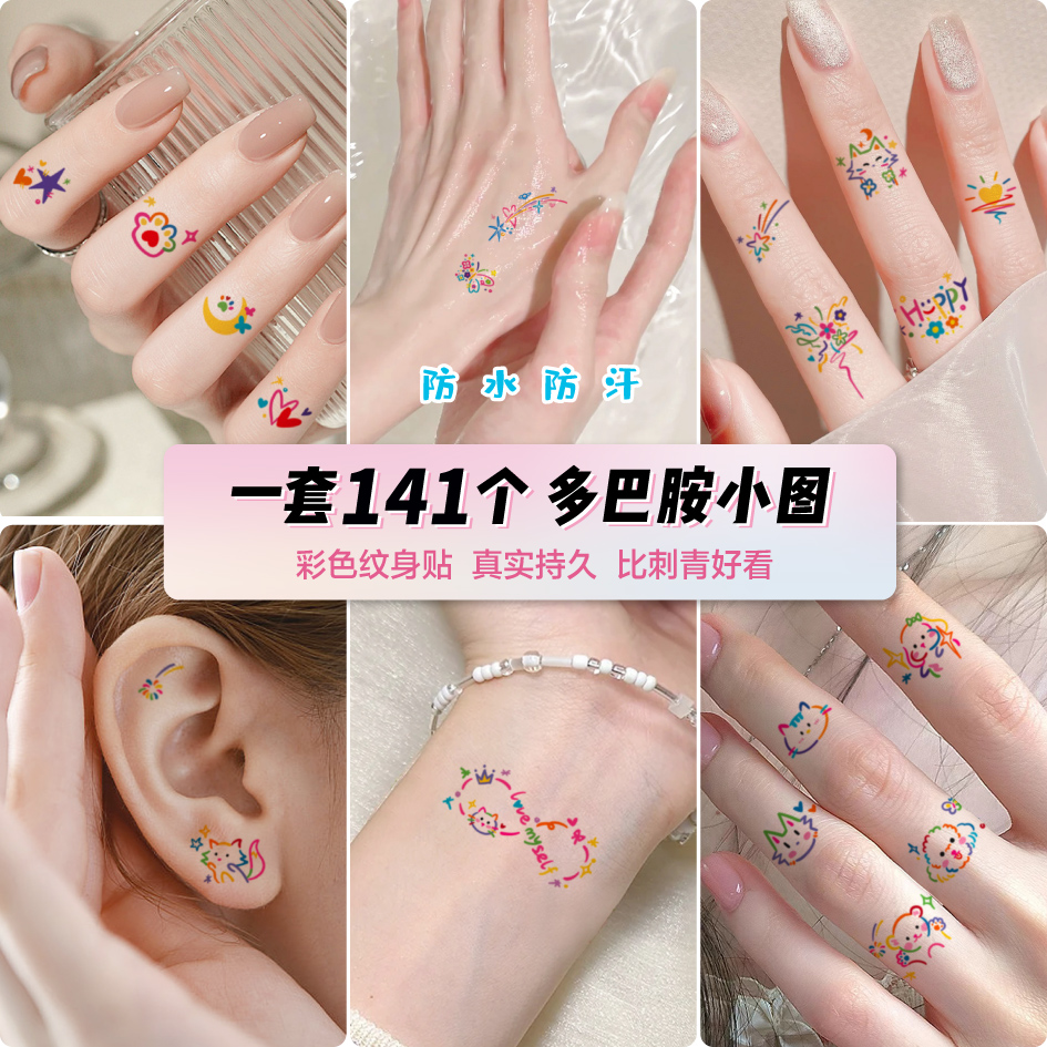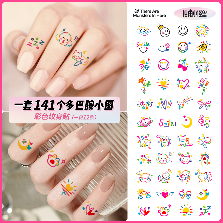独角小怪兽可爱多巴胺小纹身贴防水女持久小猫咪手指彩色儿童贴纸