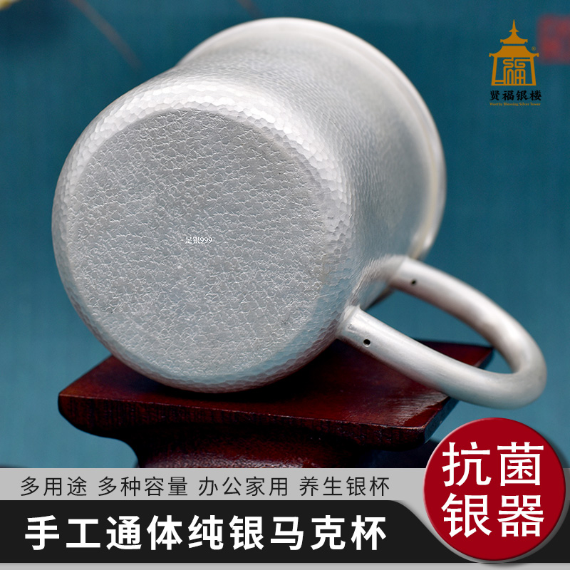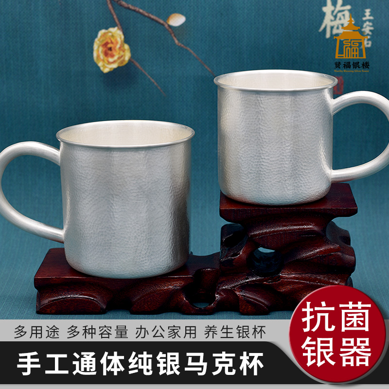 雪花银999银茶杯食用银水杯马克杯手工男女士咖啡杯大容量办公杯