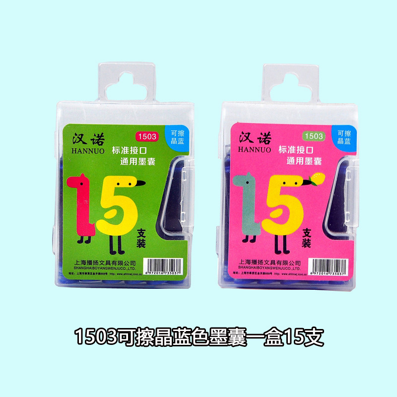 汉诺1504蓝黑色钢笔通用墨囊1503可擦晶蓝色3.4mm黑色粗墨胆批发