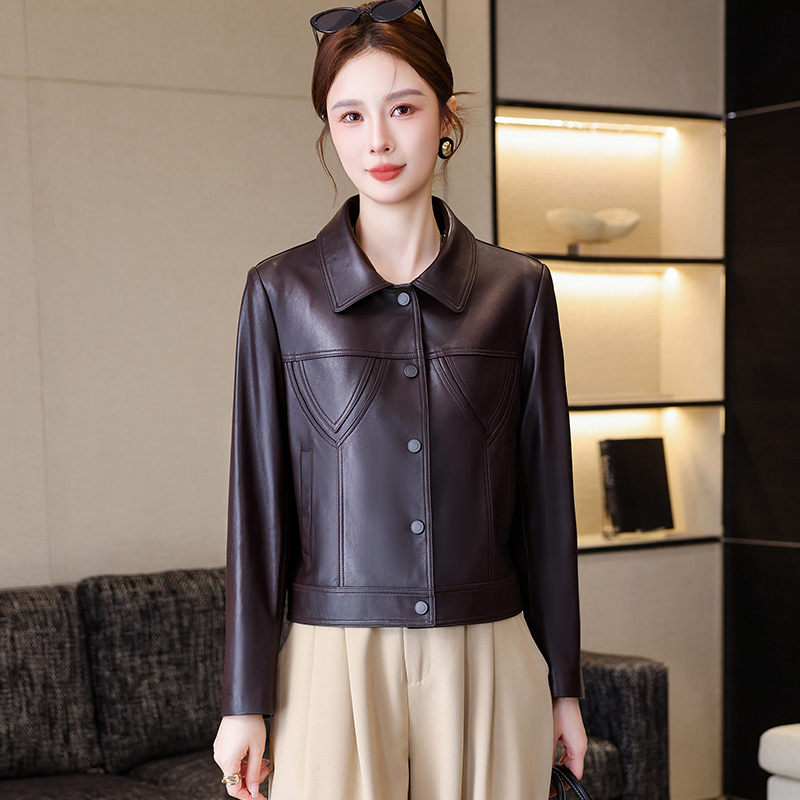 海宁高级感真皮皮衣女短款植鞣绵羊皮小个子长袖夹克显瘦外套春秋
