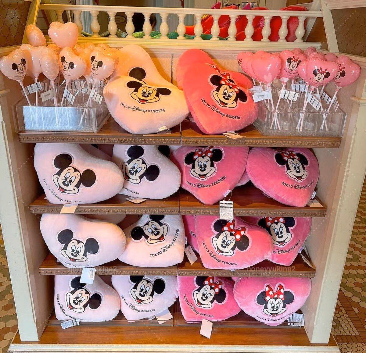 日单东京迪士尼可爱米妮爱心毛绒抱枕靠垫汽车靠垫米妮心形