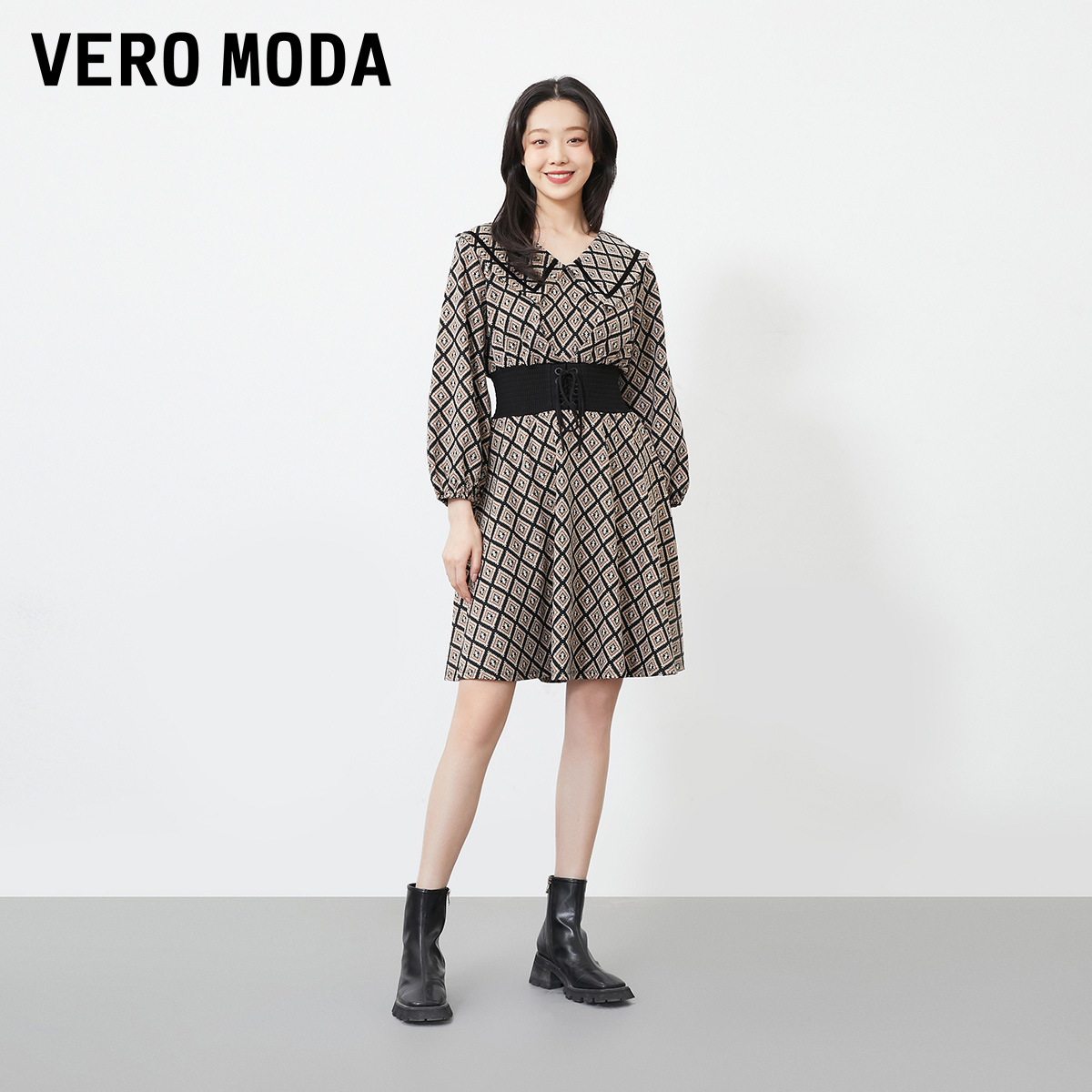 Vero Moda连衣裙2025夏季新款翻领松紧腰绑带七分泡泡袖325161013