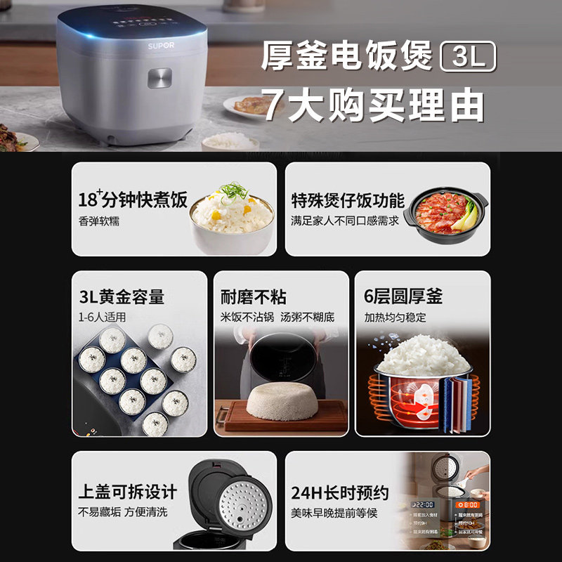 政府补贴苏泊尔电饭煲家用3L升智能电饭锅多功能小型煮饭锅不粘饭