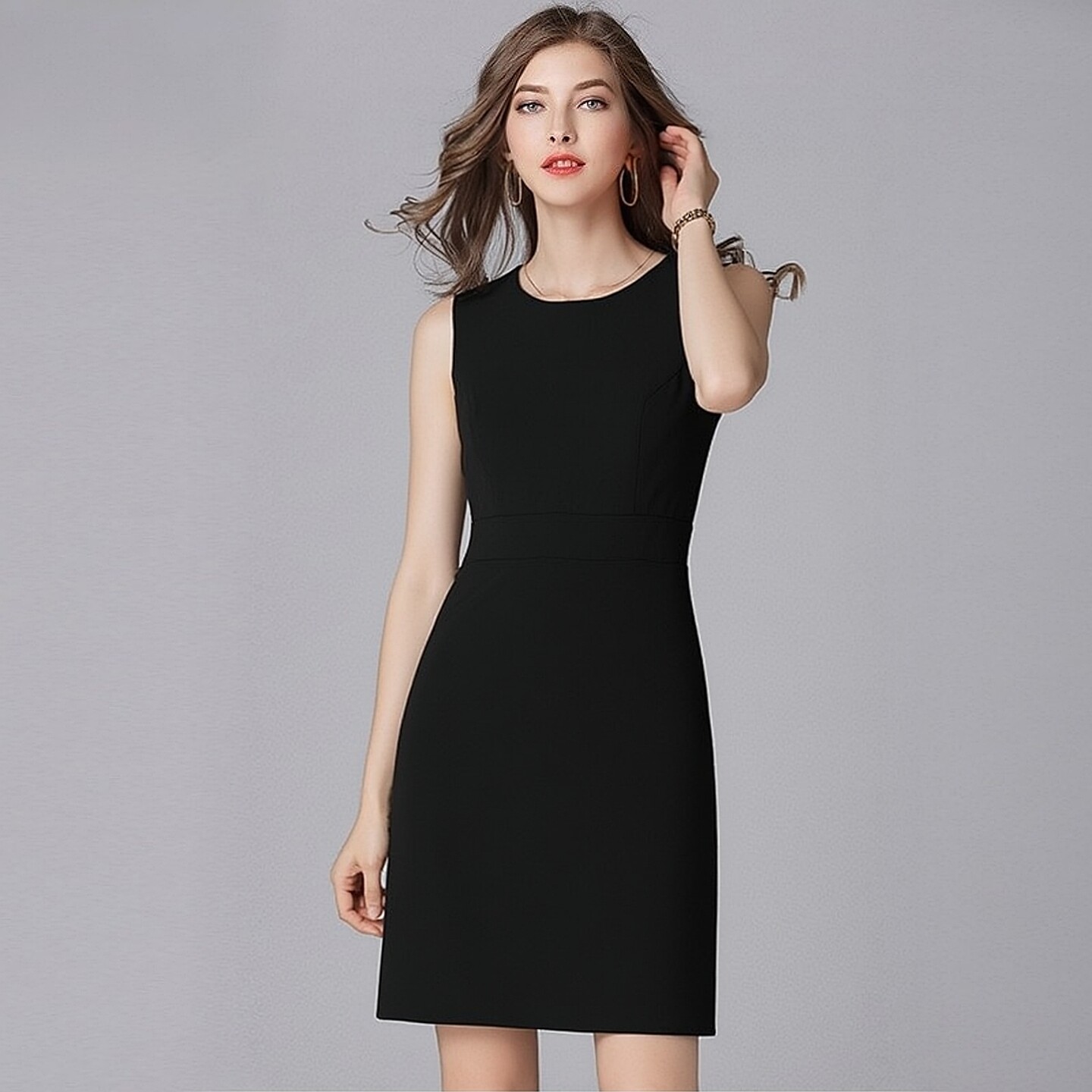 大码女装直筒弹力经典背心小黑裙