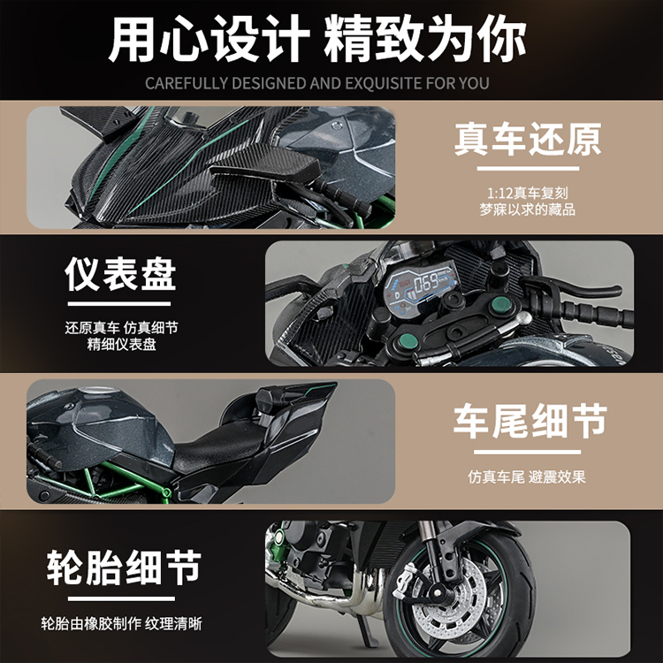 合金摩托车模型川崎H2R仿真机车车模收藏款摆件男孩玩具手办礼物