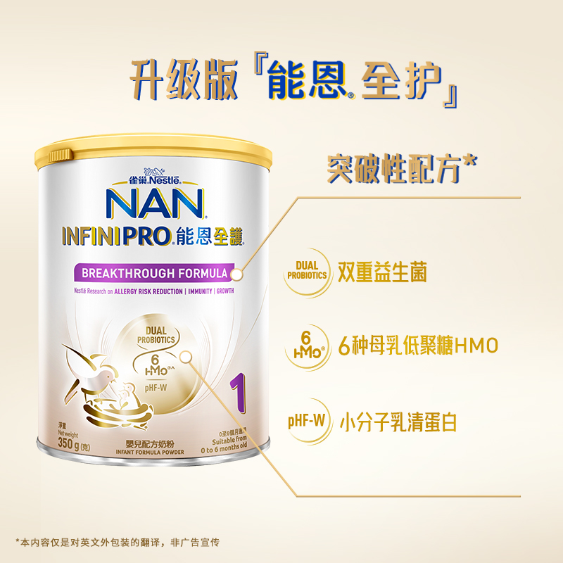 雀巢能恩全护1段350g6HMO适度水解低敏婴幼儿奶粉原装进口正品