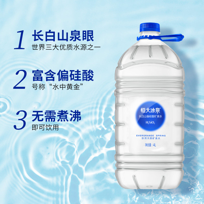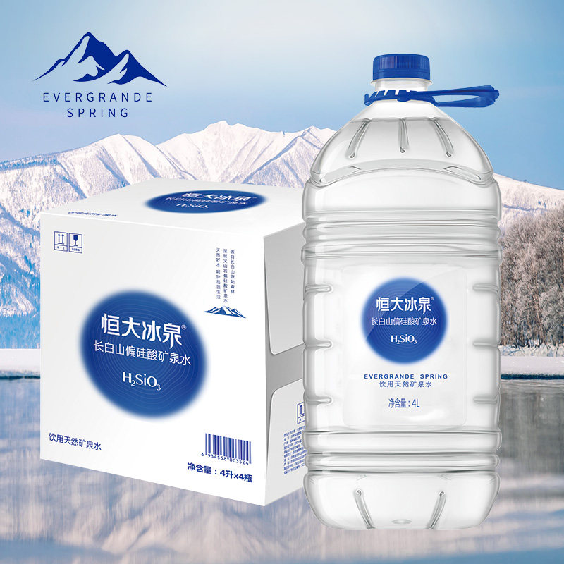 恒大冰泉长白山天然偏硅酸矿泉水4L*4瓶大桶装饮用水