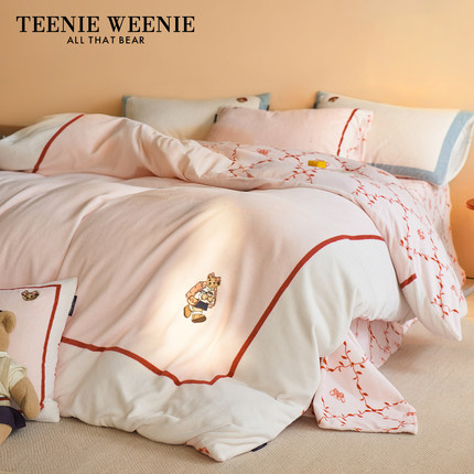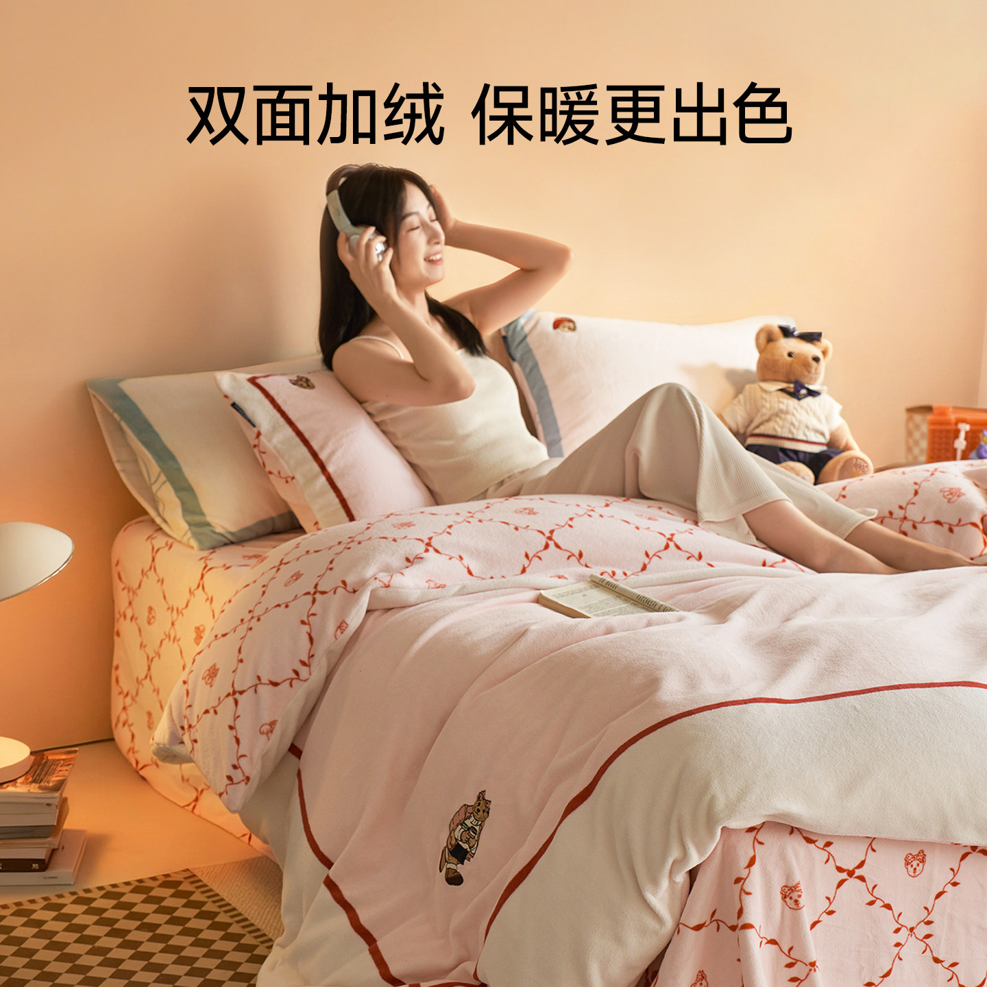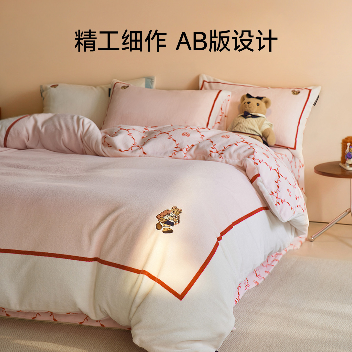 TeenieWeenie粉色秋冬季牛奶绒四件套珊瑚绒加绒被套床单保暖套件