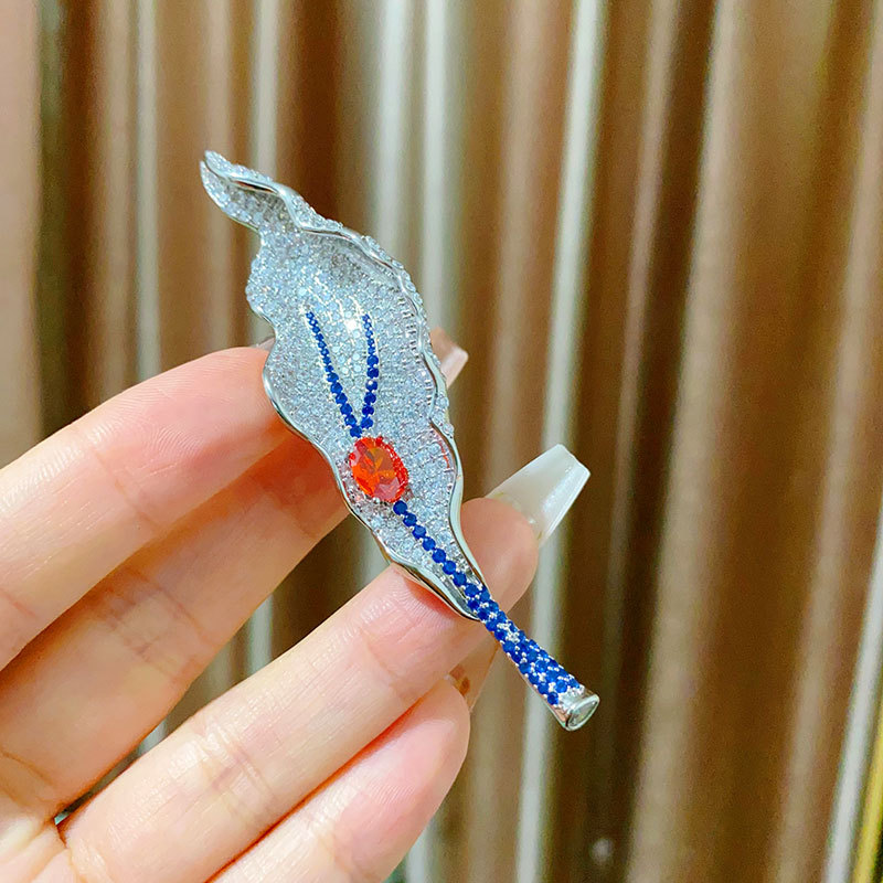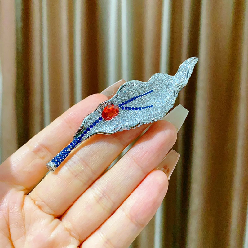 重工时尚镶钻锆石树叶胸针高档优雅晚宴礼服男女款胸花配饰别针扣