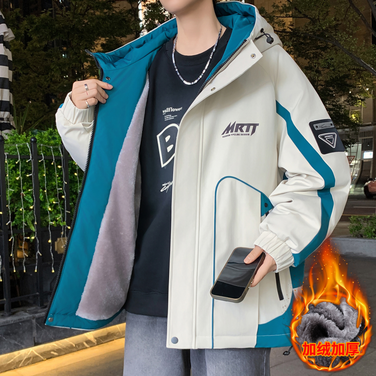 不起球不褪色加绒加厚夹克外套
